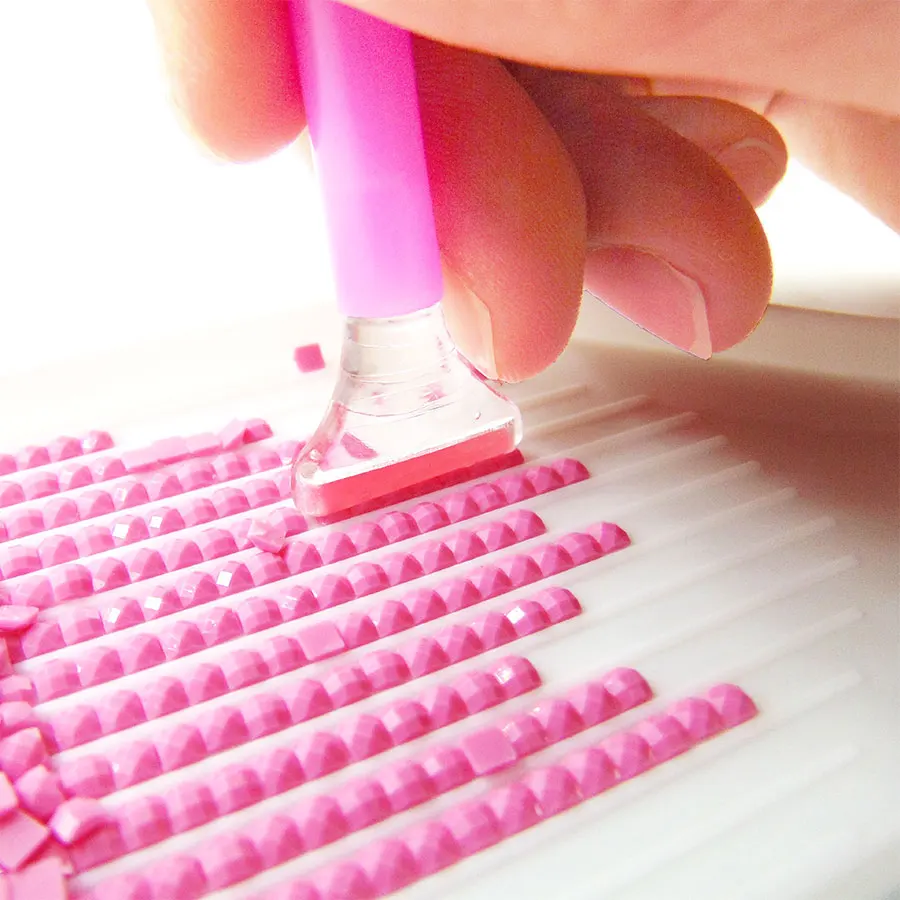 1. Найдите алмаз с соответствующим номером и относительной областью символа, обратитесь к таблице цветов на холсте;2. Наполните перо клеем; Положите алмазы в тарелку и плотно встряхните ее;3. Используйте головку ручки, чтобы приклеить алмазы;4. Разорвите частичную пленку и Наклейте бриллиант на холст в соответствии с соответствующим символом;5. Пинцет может также использоваться вместо ручки или удалять не тот алмаз по ошибке;6. После завершения, плотно прижимайте бриллианты руками или книгой, чтобы они были надежно закреплены. Поместите алмазную картину в подходящую рамку и украсьте свой дом или подарите ее другим в качестве уникального подарка.