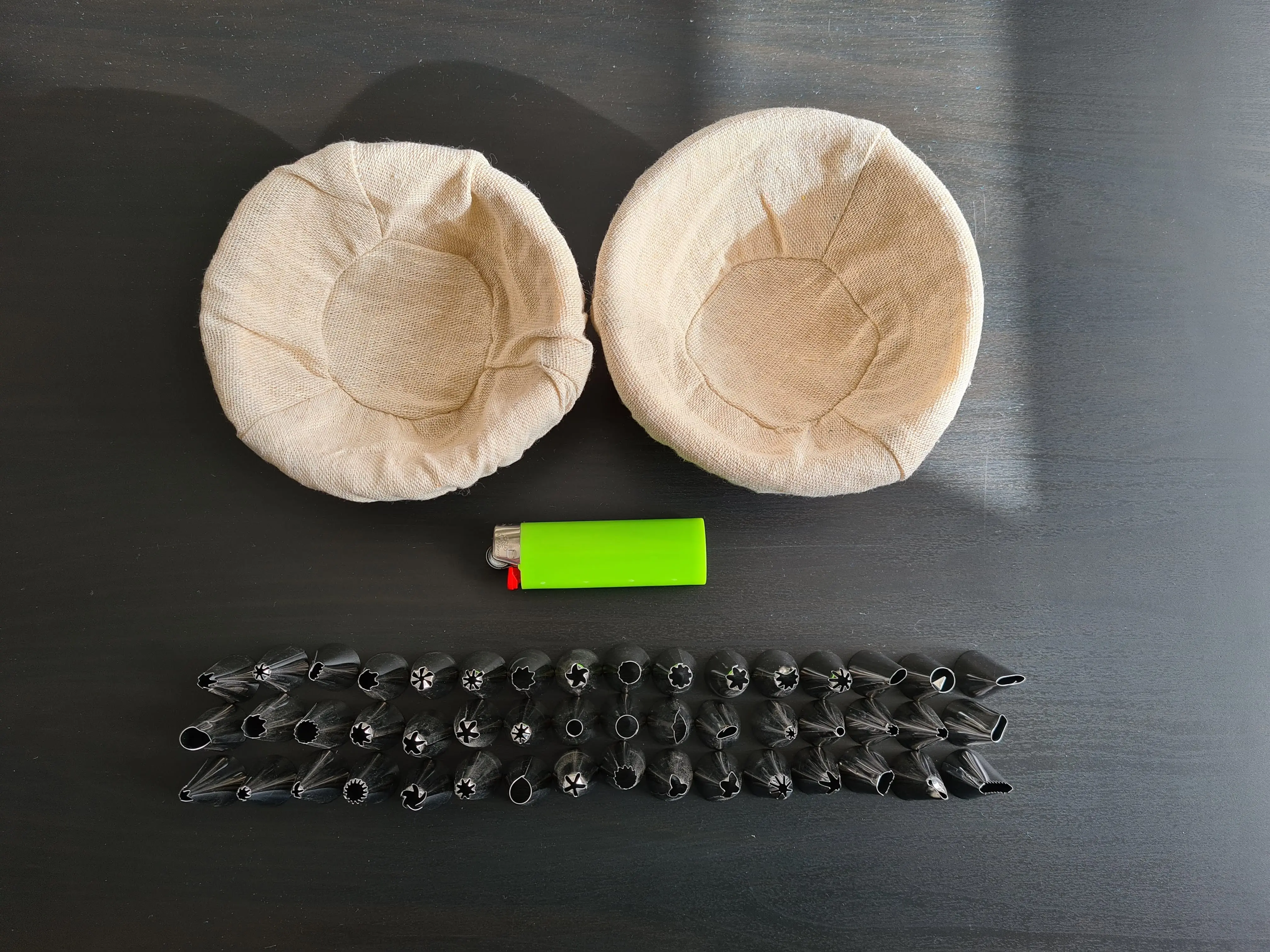 Я заказал эту маленькую корзину, и мне это нравится. Это именно то, что я хотел. При выпекании большого хлеба теперь я могу сделать несколько маленьких булочек. Именно то, что я хотел. Эта корзина слева. (Зажигалка для справки)