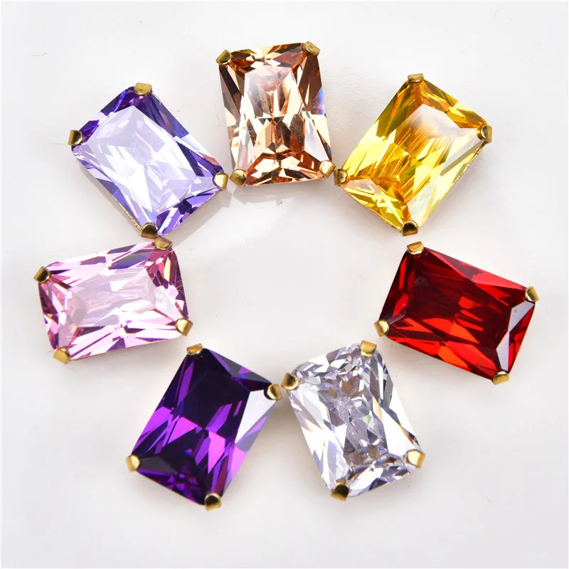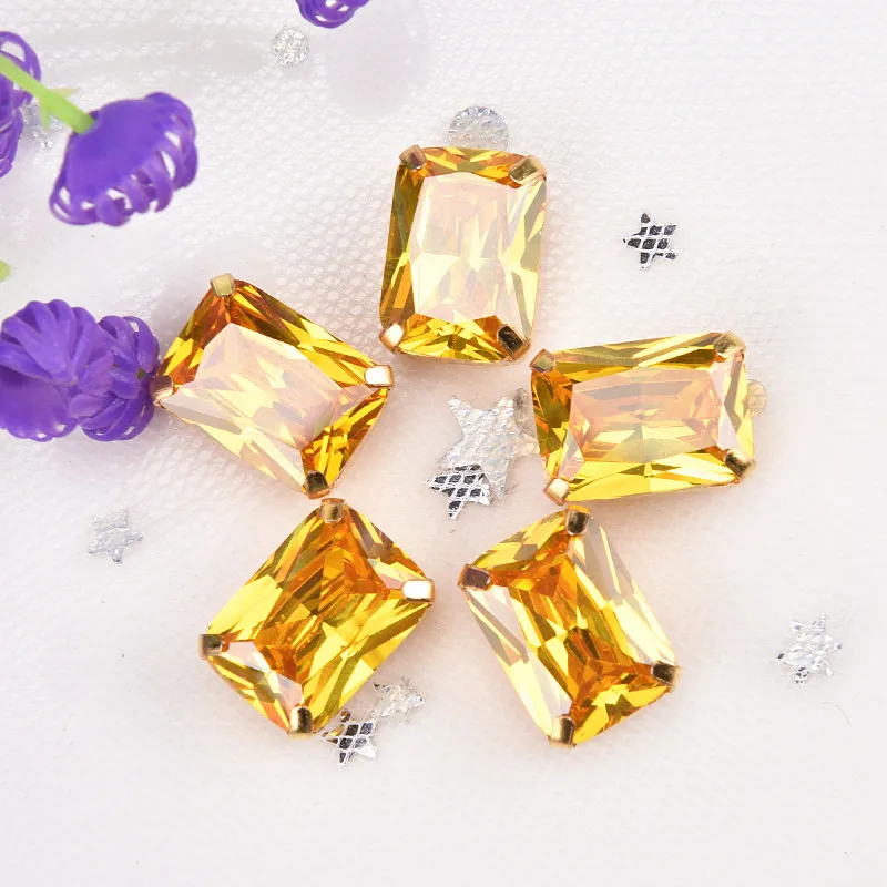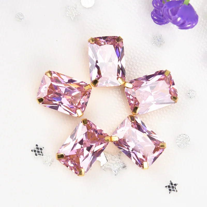 Циркониевая 10*14 мм прямоугольная 5 шт.упак. супер вспышка 5A Бриллиантовая Золотая основа для пришивания стразы, аксессуары для одежды, бесплатная доставка