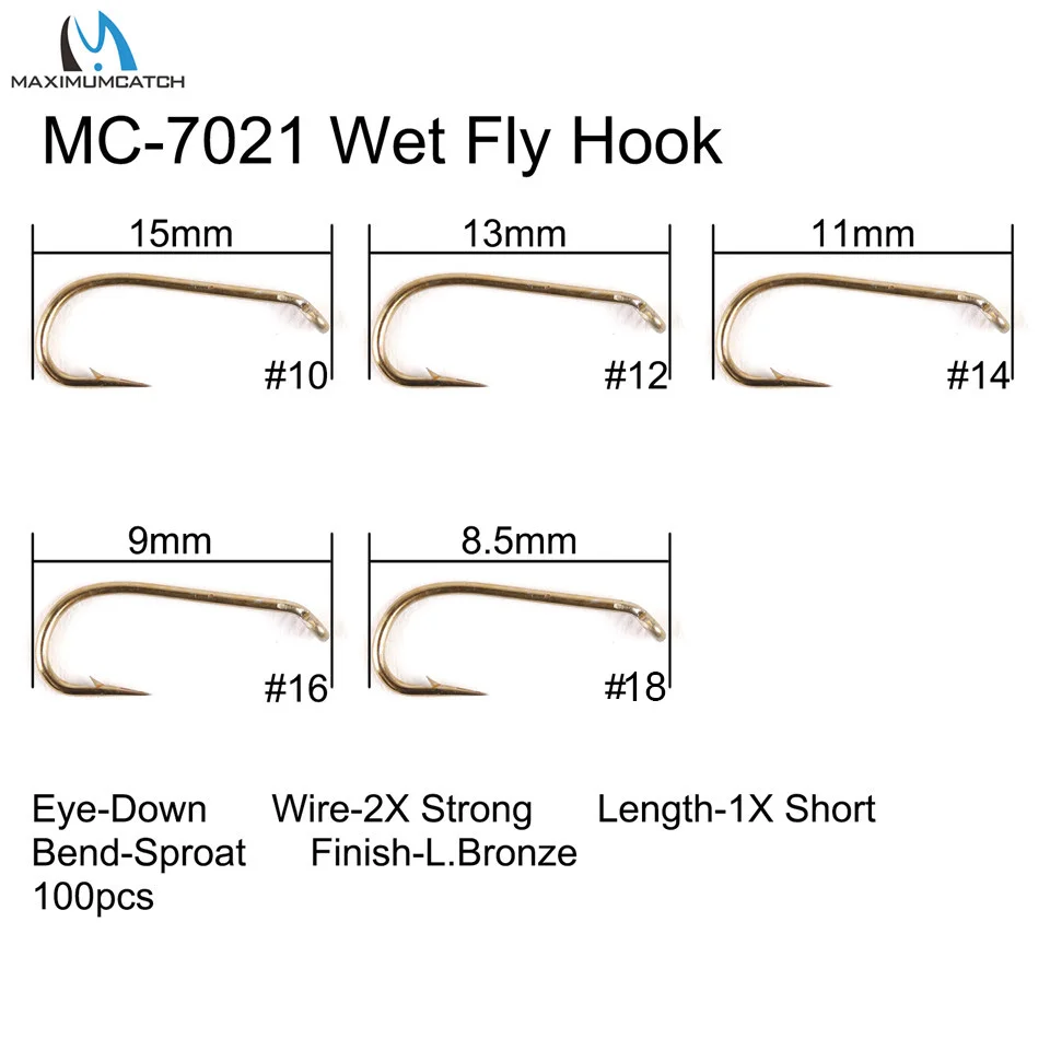 Maximumcatch, 100 шт., 4 #-22 #, удобные для рыбалки крючки с зазубринами, для сухих, влажных, нимф, креветок, Caddis, Pupa, Стример Летать, крючки