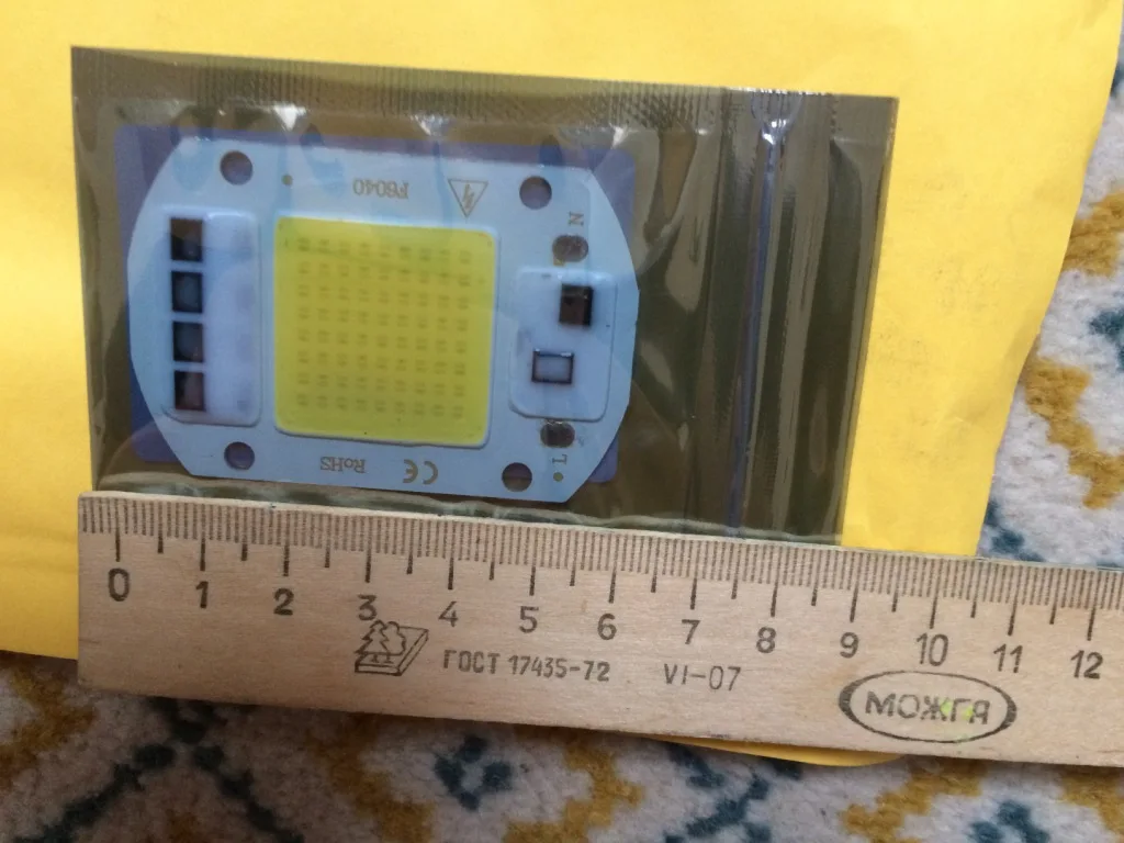 Доехали недели за три. Уже давно заказываю такие модули у разных продавцов. Очень живучая и хорошая конструкция. Только требуется хороший теплоотвод. Модули на 50 ватт без принудительного охлаждения греются так, что можно яичницу жарить. 20-ваттные таким нагревом похвастать не могут, при этом вполне неплохо светят. Жёлтый свет гораздо приятнее для глаза, при этом отдача по сравнению с белым почти не отличается. В общем очень рекомендую.