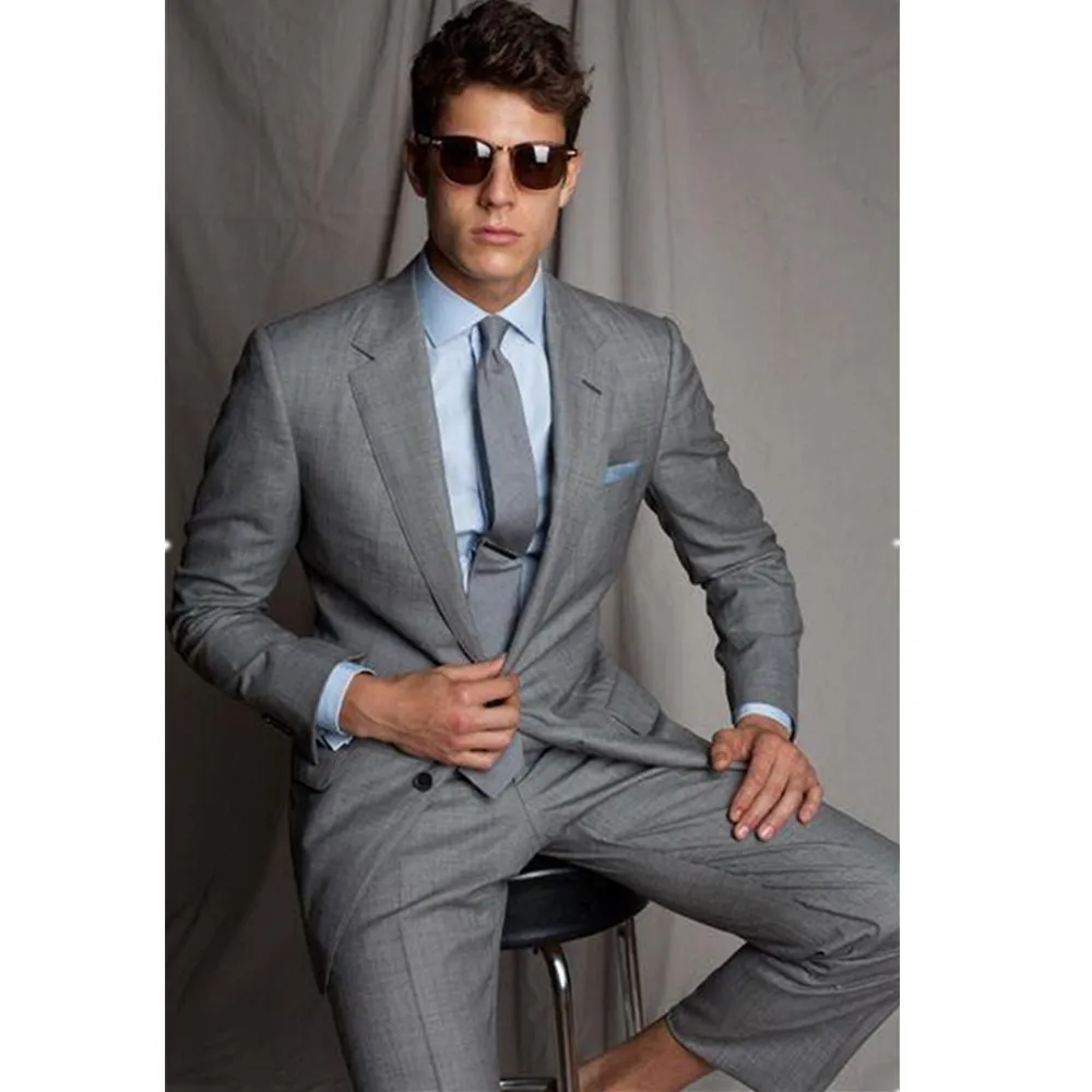 Роскошный мужской свадебный костюм, мужские блейзеры, приталенные костюмы для мужчин, деловой костюм, официальвечерние вечеринки, серый классический черный (пиджак + брюки + галстук)
