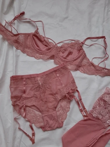 У продавца на выбор есть несколько расцветок, я захотела сете более нежную расцветку и на параметры 88-67-90 и рост 158см я заказала размер S. Заказ продавец отправил быстро,трек номер прослеживался.Доставка месяц в Беларусь. Белье хорошего качества, без постороннего запаха и торчащих ниток.Все швы ровные и аккуратные. Материал акрил,полиэстер.Нежное кружево и цвет. В комплекте идет вверх ,низ и чулки. Вверх без пушапа ,я обожаю такие модели ,шлейки регулируются. Низ с высокой посадкой, прозрачные к ним уже пришиты специальные защипы для чулок. Чулки стандартные ,вверх достаточно плотный и с ног не спадает. Сидит комплект классно и по фигуре. Рекомендую к покупке.