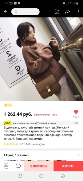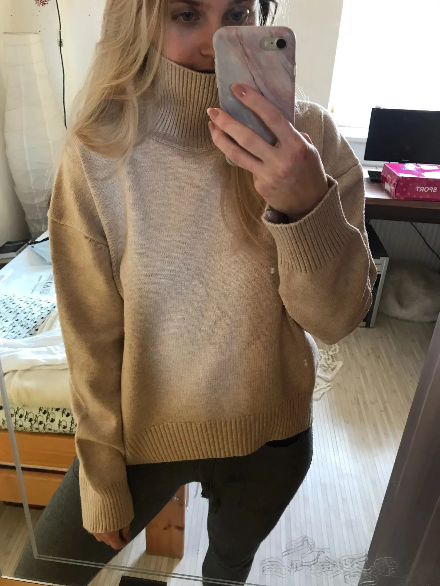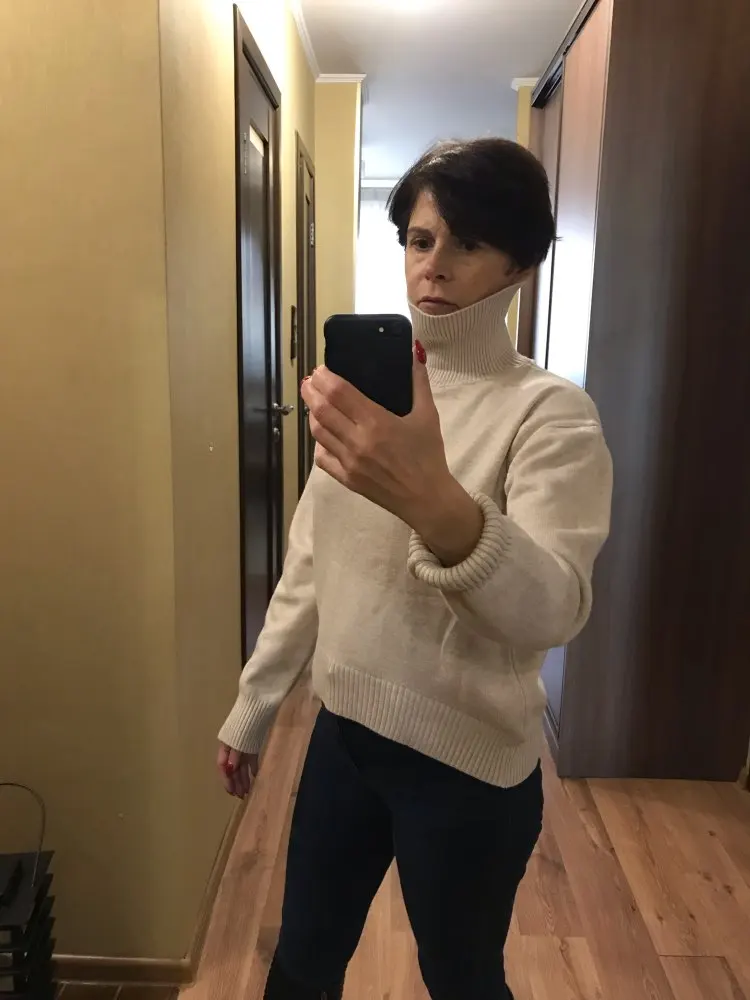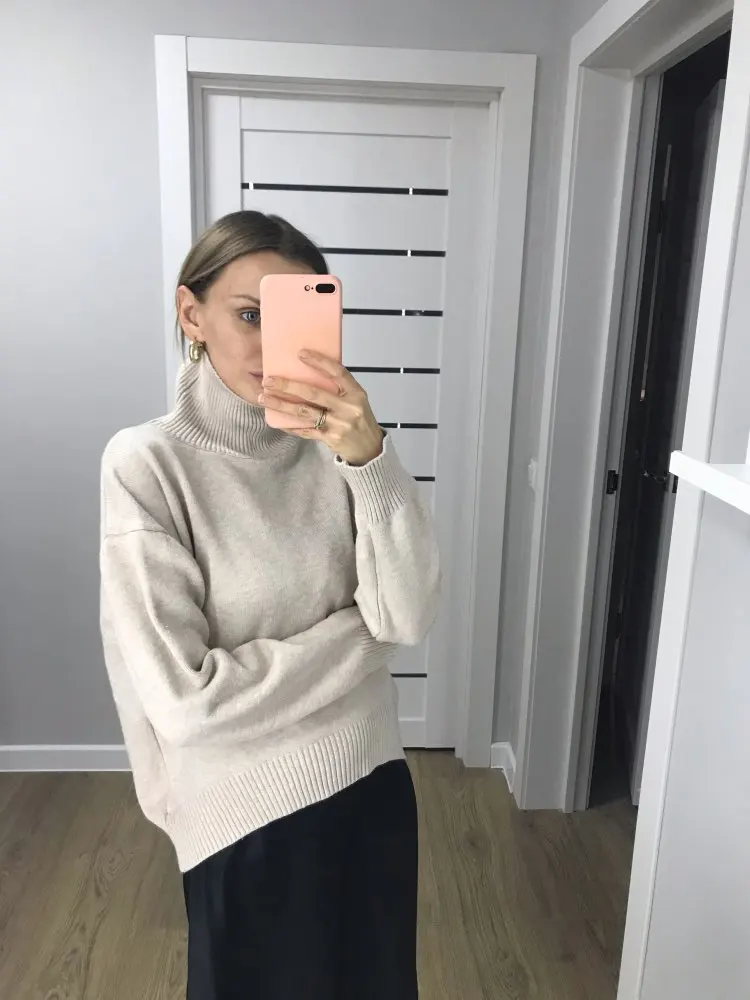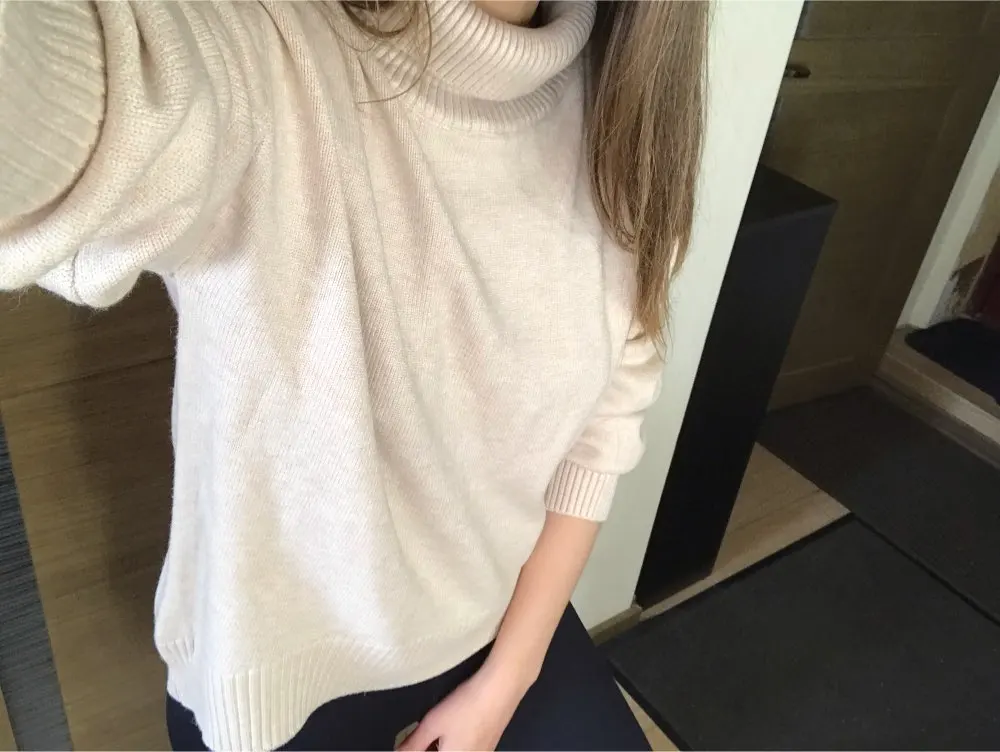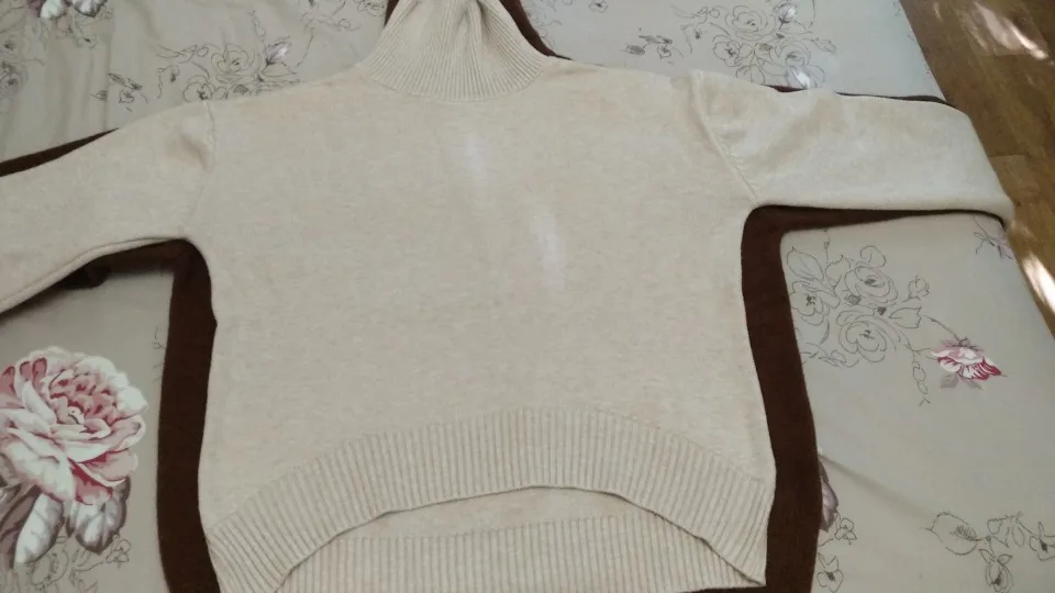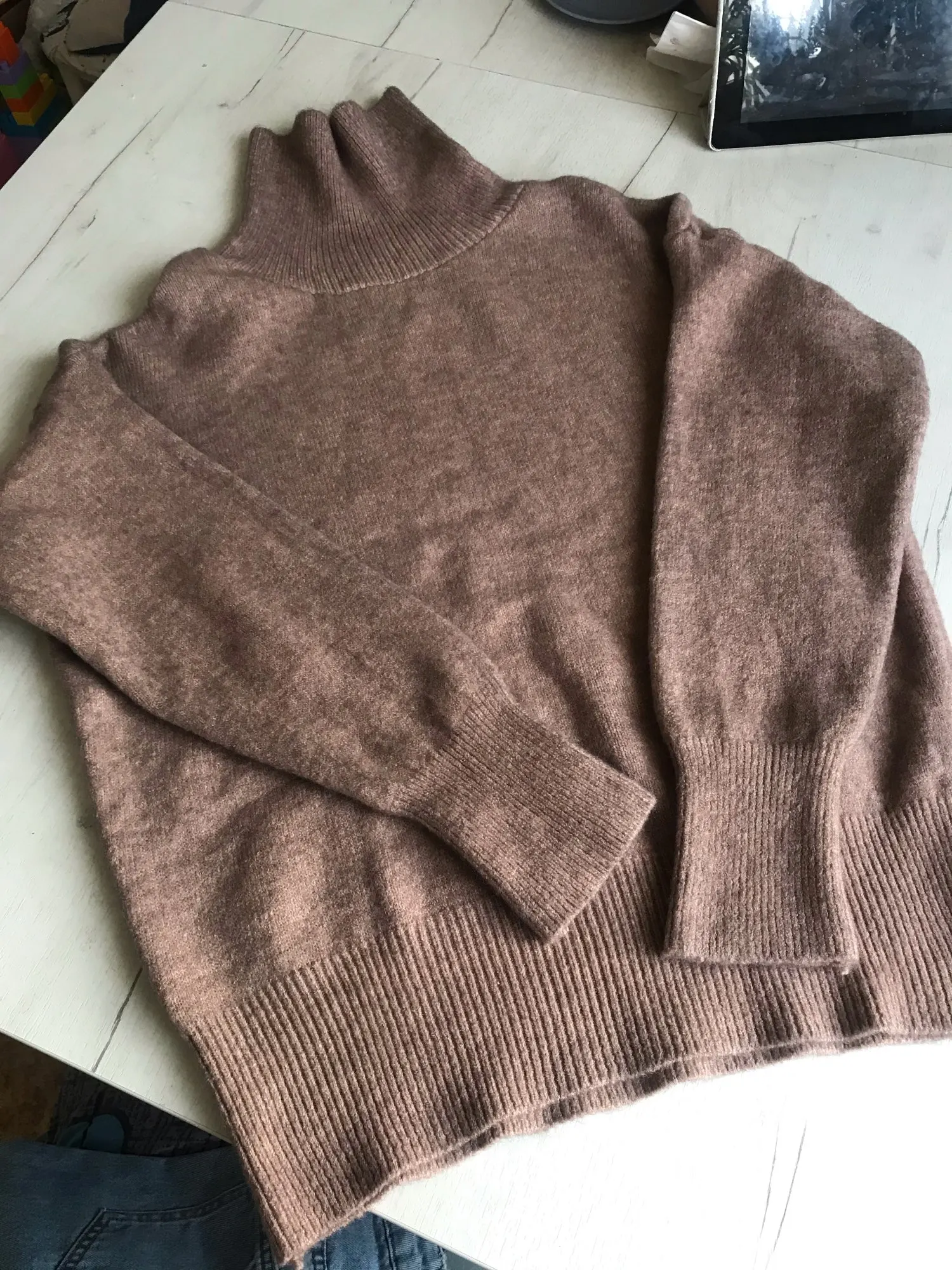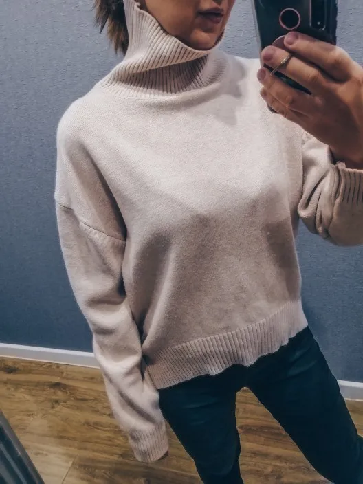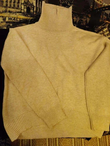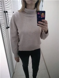 Стандартная история для алиэкспресс - сначала заказала в коричневом цвете и свитер супер - объемный ворот, плотная вязка, фасон как на фото. Решила заказать такой же чёрный. Не повторяйте моей ошибки)) ворот короче, вязка тоньше, свитер не такой объемный и вообще выглядит иначе