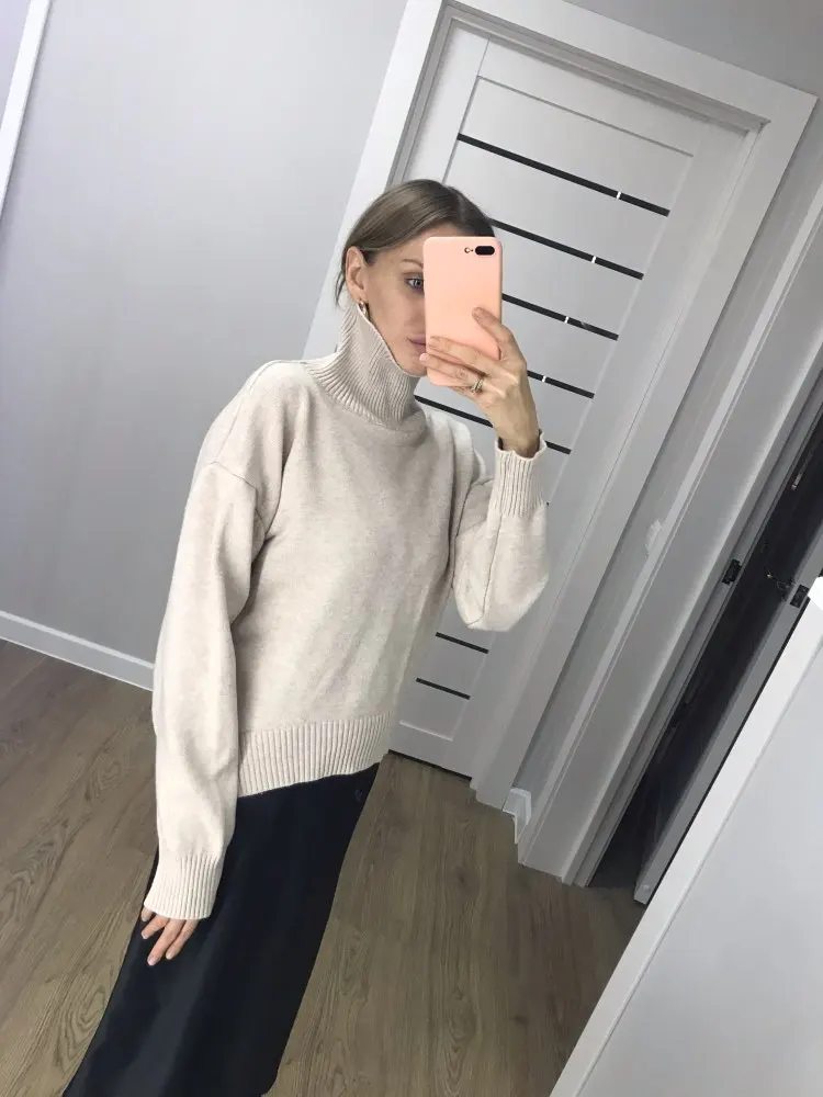 Свитер женский кашемировый, с высоким воротом, теплый, свободный, осенне-зимний