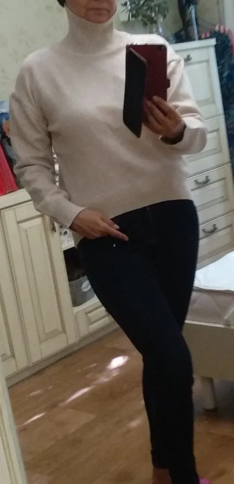 ⭐Свитер достойный вашего внимания! ⭐ Цвет- apricot. На мои параметры : рост-158 см, грудь-89, (живот-69), бедра-90. Ношу размер S. Получила- сразу постирала в машинке, режим "шерсть" . Сушила на сушилке горизонтально. Ни чего не деформировалось. Плотный, тяжёленький. Воротник на приятное удивление стоит, что в ветренную погоду ну классно . Тёплый и нежный. Похоже на кашемир . Но, нужно деликатная стирка, помните! Рукава отличные, подойдёт на высоких. Можно носить на выпуск , так и заправленным в брюки/штаны. ❤️⭐⭐⭐⭐⭐ Доставка очень быстрая в Самарскую область ! 10 дней!