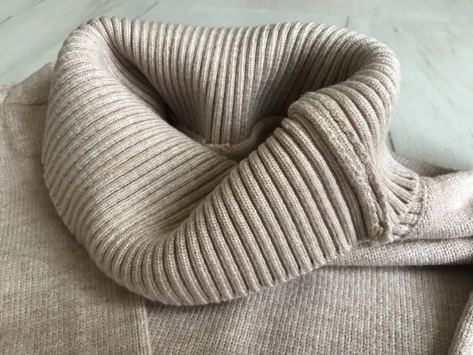 Свитер очень плотный, но мне пришёл с браном! Пришлось нести в ремонт, по спору часть денег вернули! Сам свитер отличный, на 104/108 сел отлично! Очень здорово смотрится с платьями, юбками, джинсами и брюками, в общем универсальный! Цвет красивый! Из минусов; нет не одной бирки , хотя у свитеров без горловины бирки есть! Состав не известен! Хотя заказывала именно этот из-за того что продавец заверил что состав Акрил/Шерсть, но не известно! Сначала хотела взять без горла, но продавец сказал что сейчас состав 100 акрил, по этому выбрала этот! Ещё в пути акриловый свитер из этого магазина, вот и сравню когда придёт! Обязательно отпишусь! И ещё минус что горло подвернуть нельзя, шов проходит как раз внутри и если подвернуть он оказывается снаружи, он плотный!