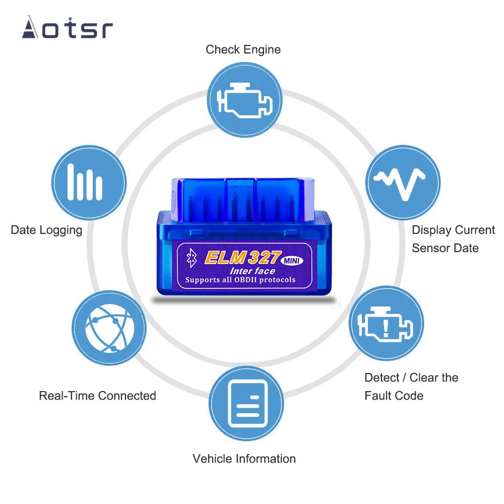 Диагностический сканер Aotsr V2.1, прибор для диагностики автомобиля OBD2, с Bluetooth, для Android