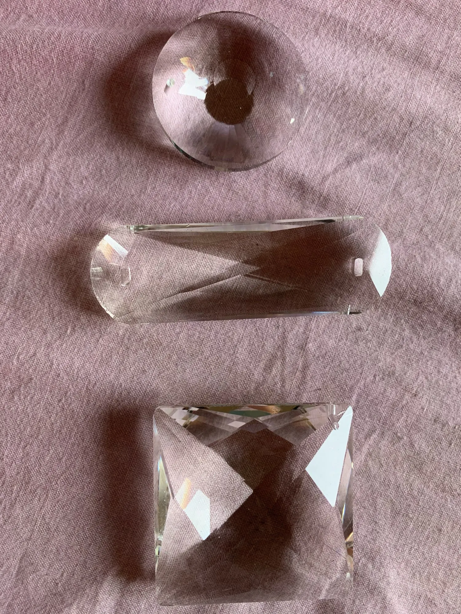One star for gash/scratch on all suncatchers. A very small but Deep Scratch. In the center! Items came wrapped in wax paper. So I guess these are stored together? Scratching included 40mm UFO & 75mm prism. All arrived in same pack. Fast shipping & decent arrival time considering holiday. Go USPS! Good effect in full/partial sun.
