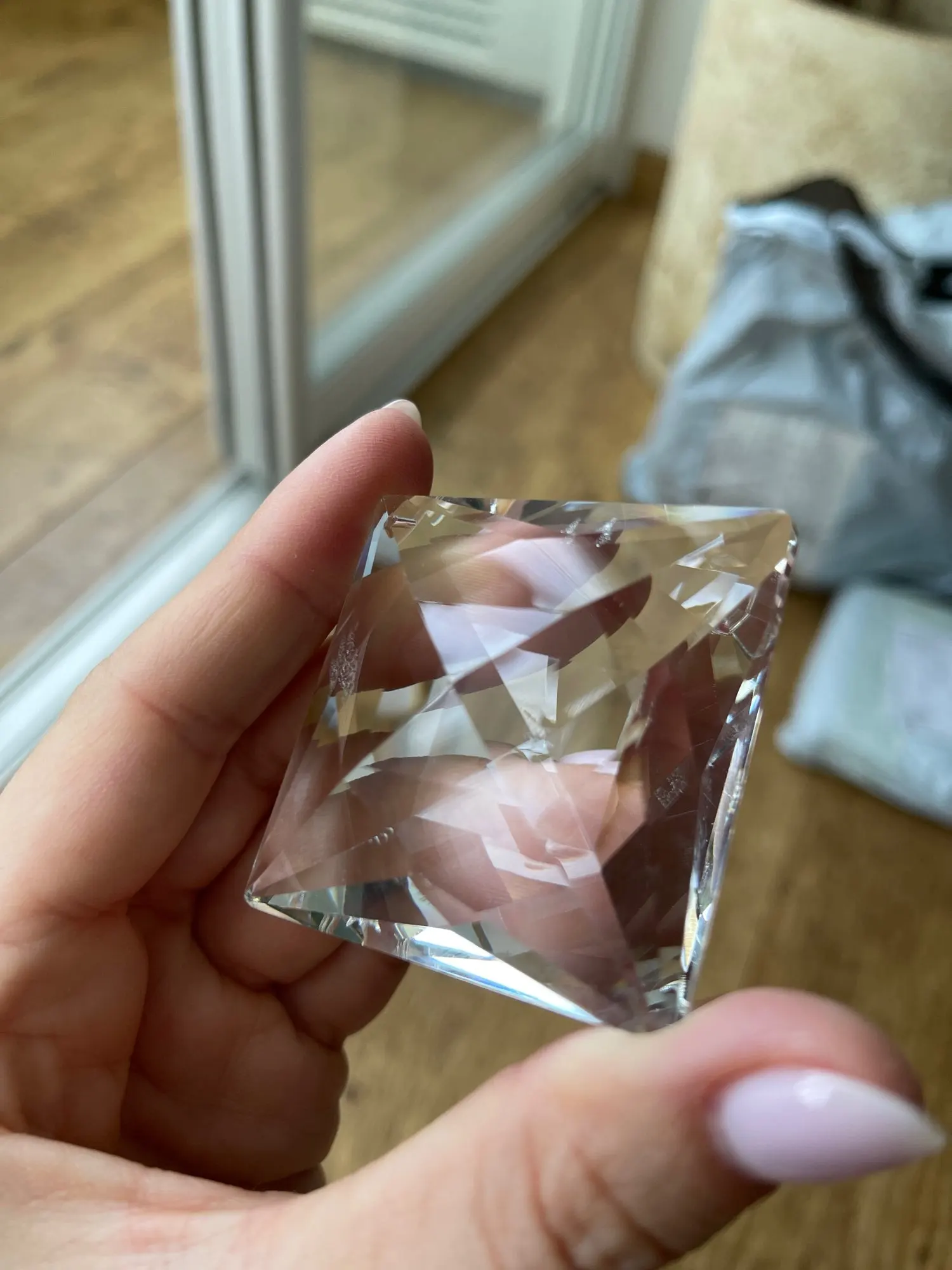 хрустальное стекло, хорошая огранка, долетело быстро, бликует невероятно красиво.