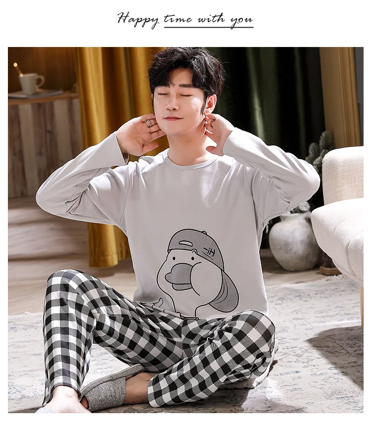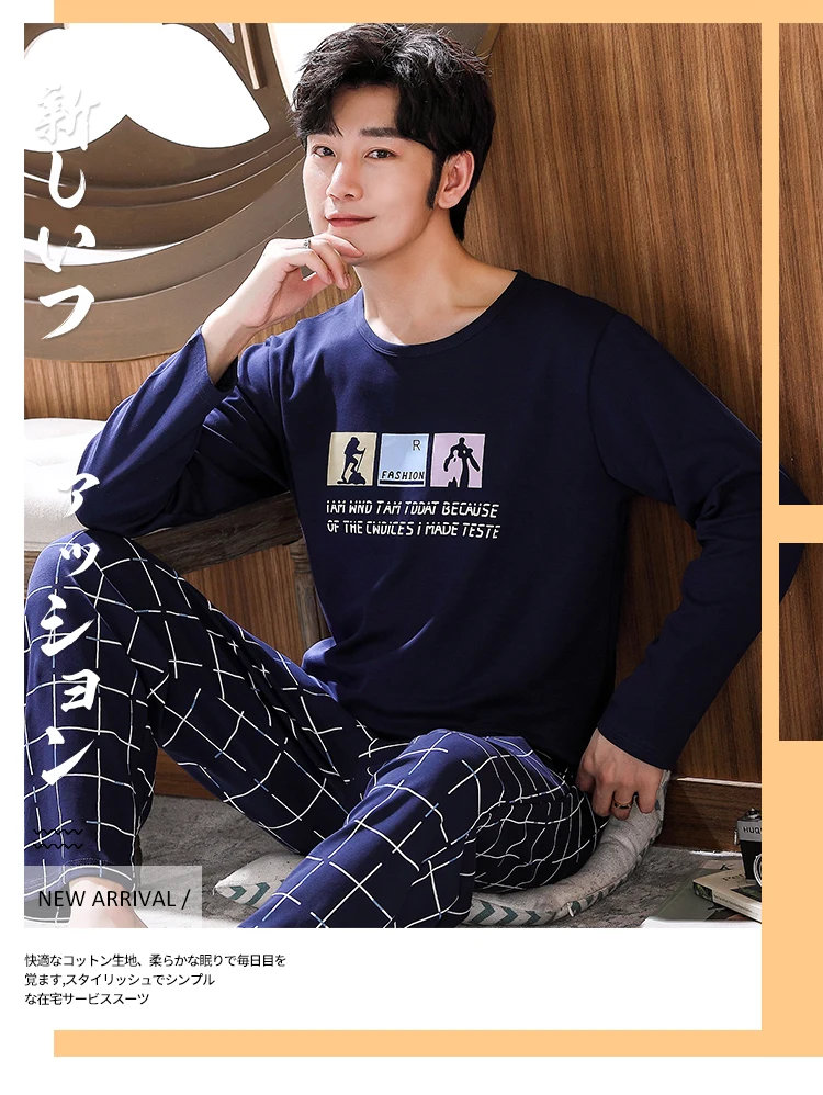 Пижама мужская хлопковая в полоску, одежда для сна с надписью, мультяшный рисунок, Повседневная Пижама для отдыха, размеры до 4XL, на осень-зиму