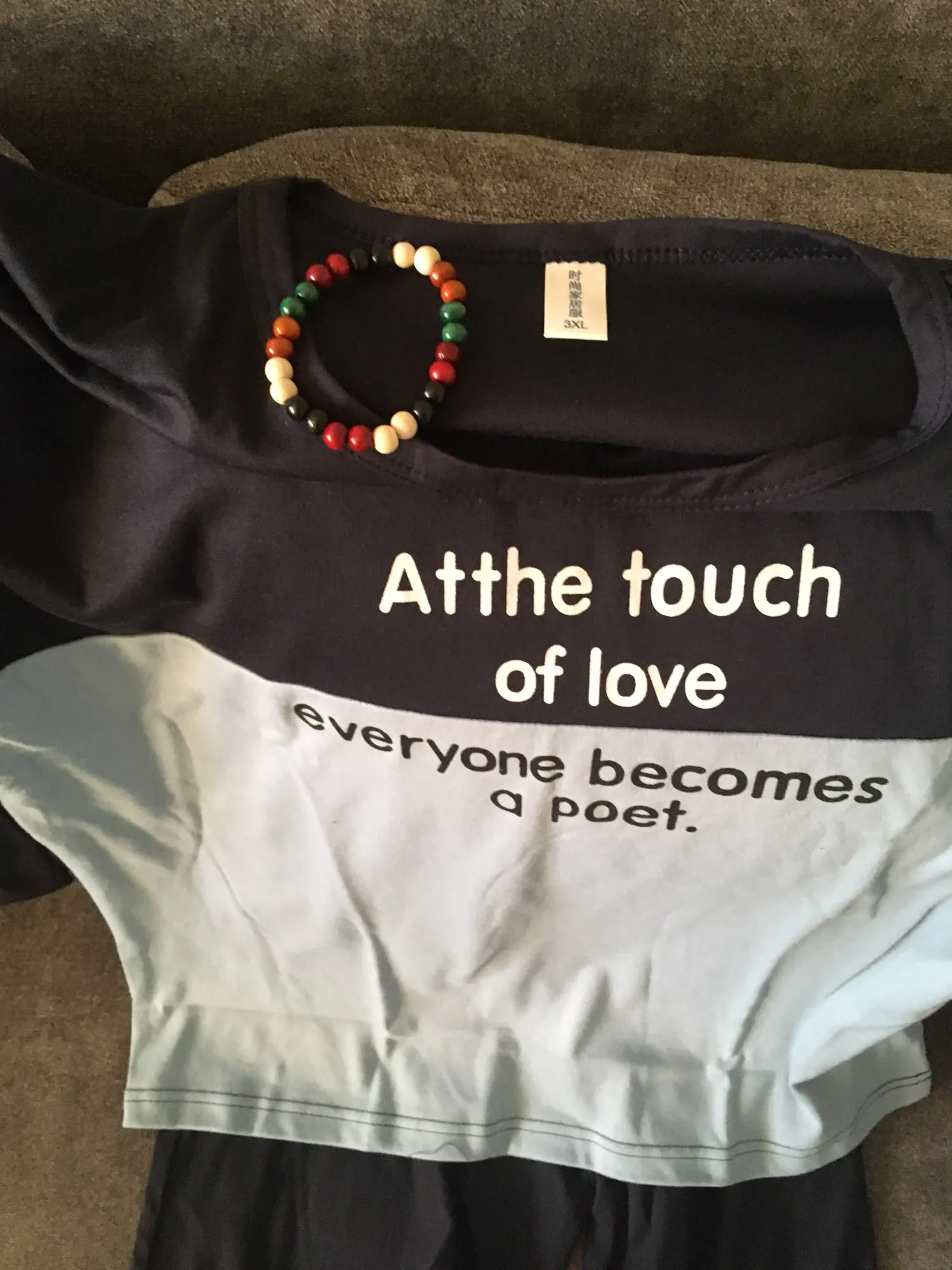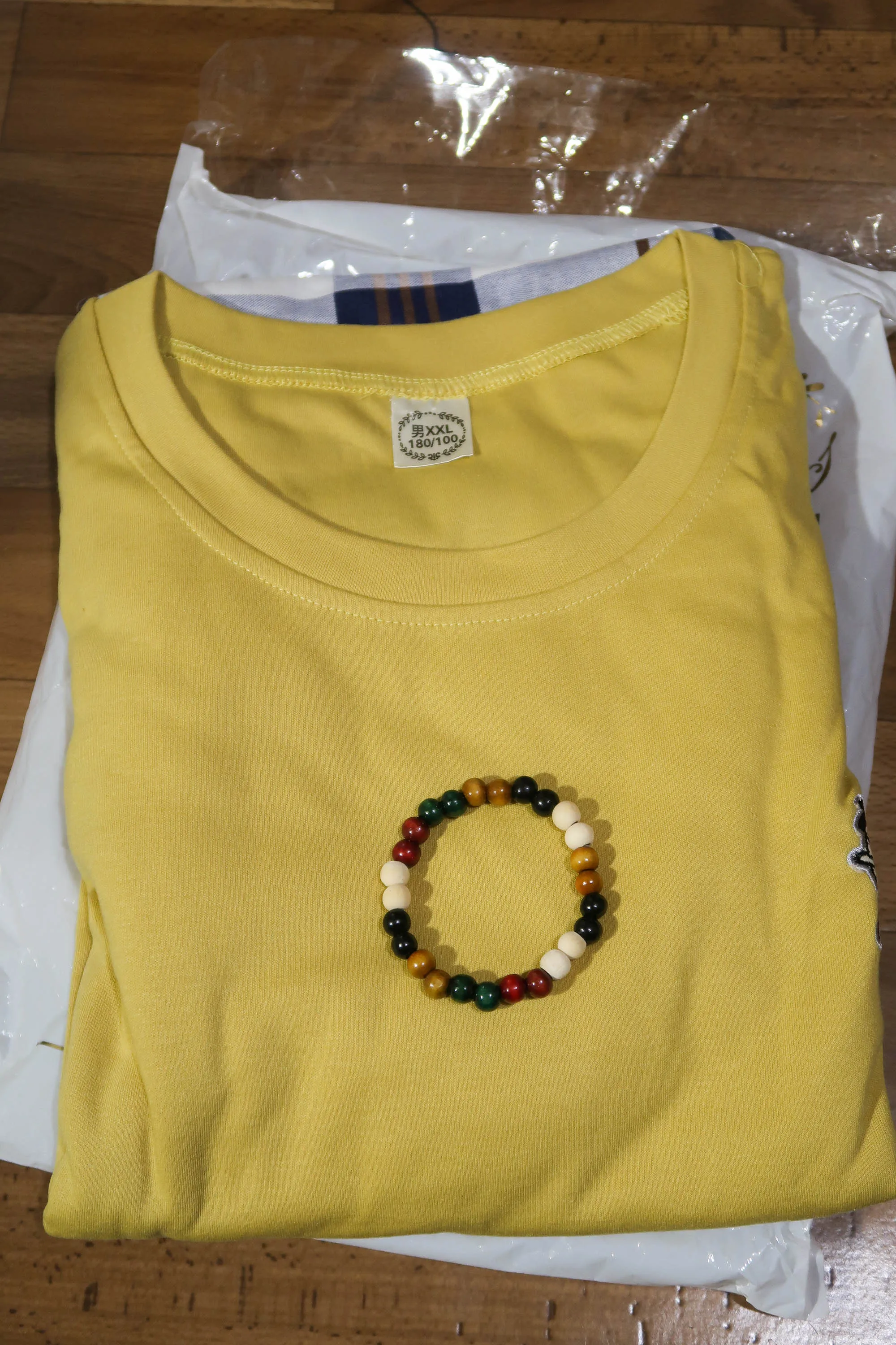 Пижама шикарная, качество на 5+, цвет зрительно приятный, как поведёт себя после стирки, будет видно. Описанию соответствует. Хлопок-хлопок, тактильно приятная к телу!!! Строчки ровные, крой изделия ровный. Пижама для мужа, одела(на фото я), чтобы показать. Размер XXL- соответствует русский 48-50. Таваром очень довольна, продавца рекомендую. В Московская обл. посылка летела 3 недели - быстро,думала будет дольше. Спасибо за подарок, я думаю можно носить на руке, как браслетик, бусины- дерево- Супер! Благодарю, Вас. Всего доброго!