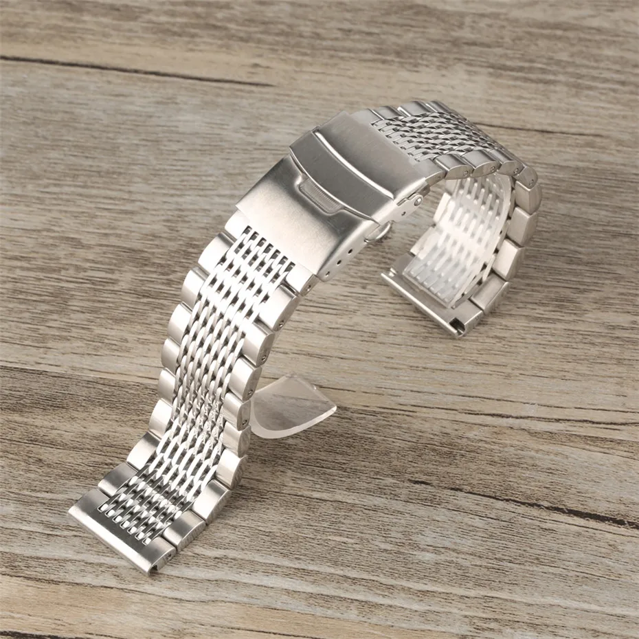 Ремешок мужской из нержавеющей стали, однотонный металлический браслет для наручных часов, замена для часов мужских часов, 22 мм, черныйсеребристый
