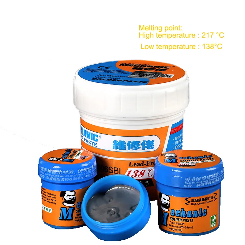 Экологически чистая паяльная паста MECHANIC, паяльная паста с низкой температурой плавления, паяльная паста для переделки процессора, канифольный флюс