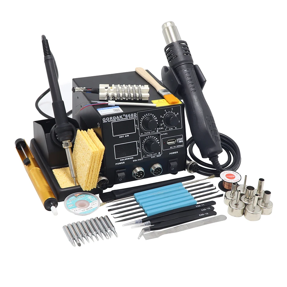 Паяльная станция GORDAK 868D 3 в 1, интеллектуальный цифровой антистатический пистолет с горячим воздухом, зарядка через USB, мобильный телефон