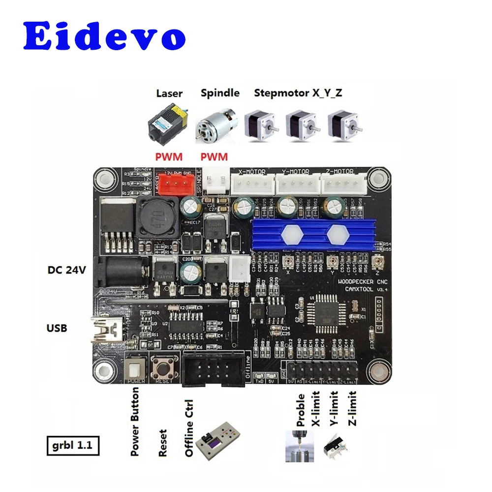 Лазерная контроллер гравировальной машины с ЧПУ, 3-осевая GRBL 1.1f USB-порт, лазерный гравер V3.4 для CNC3018 CNC 3018PRO