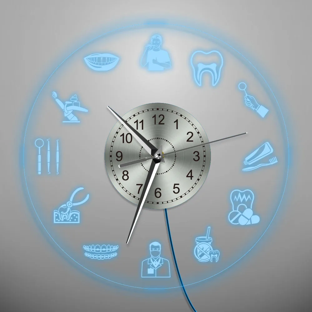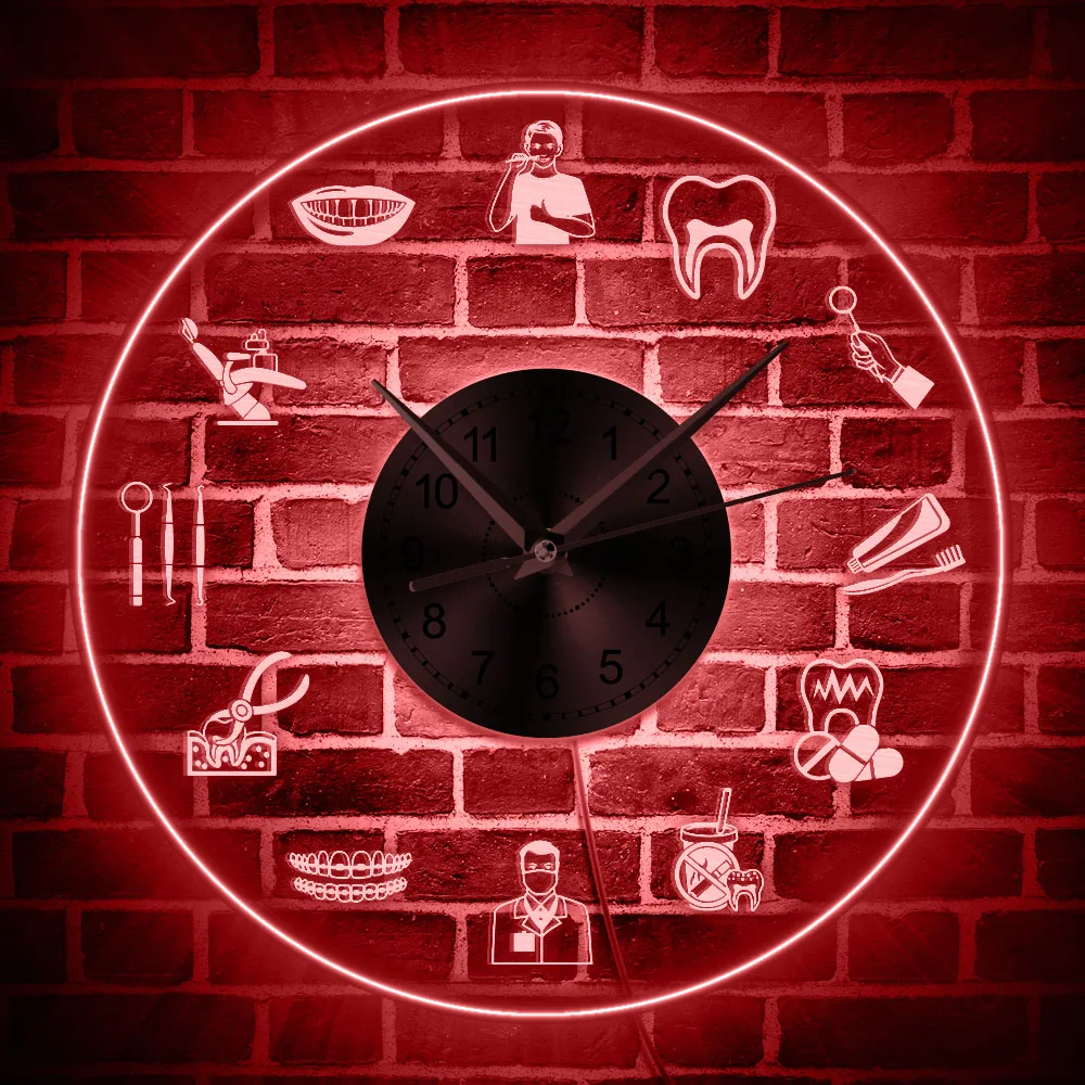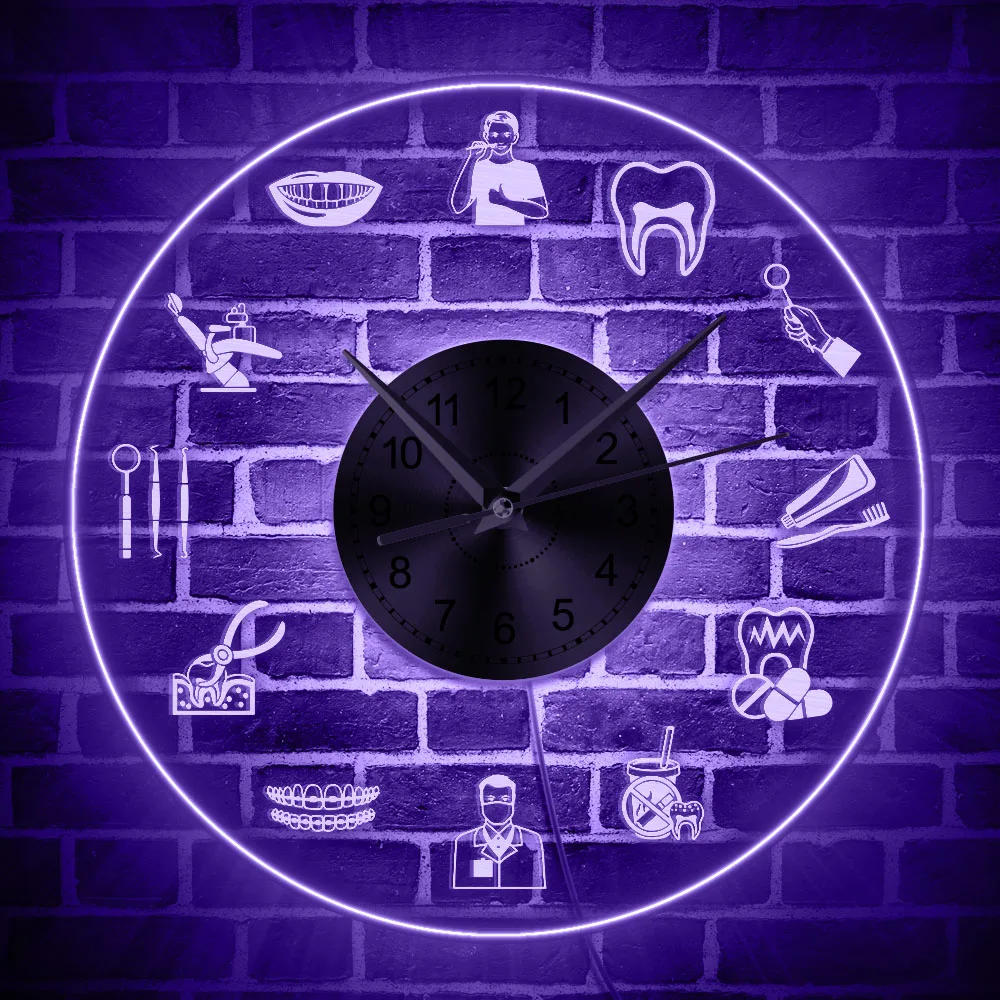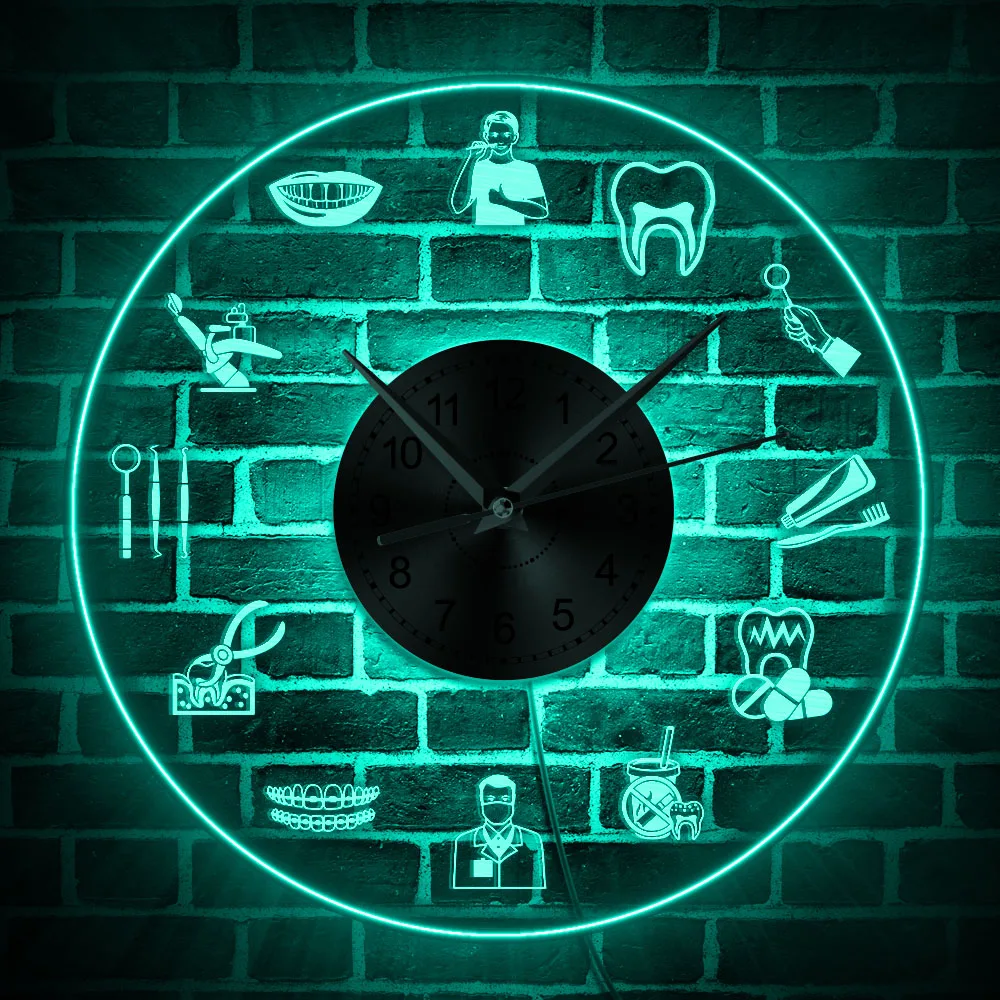 Стоматологический уход логотип светодиодный неоновый знак настенные часы здравоохранения стоматологии знак изменения цвета гигиенист акриловые часы настенные часы