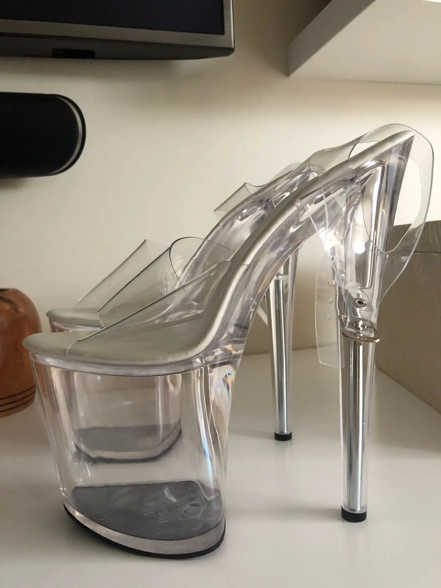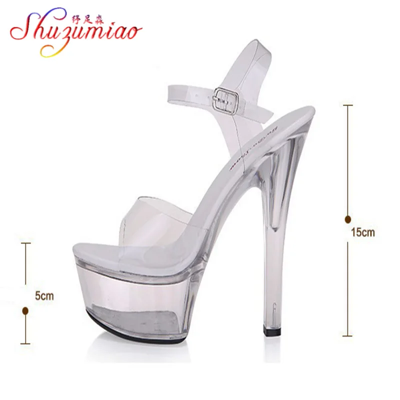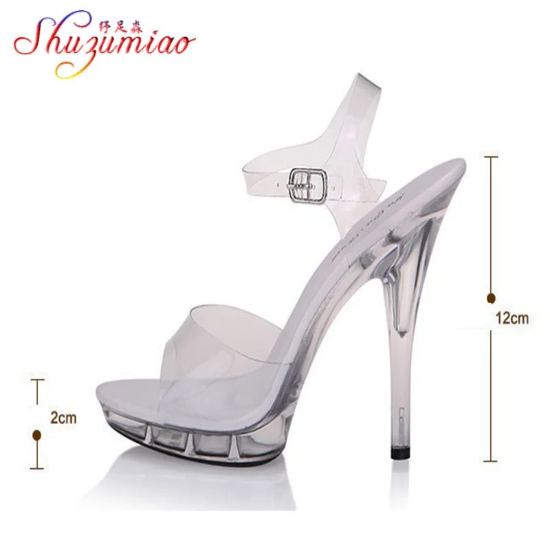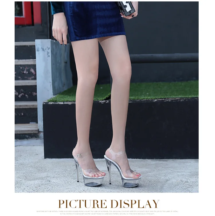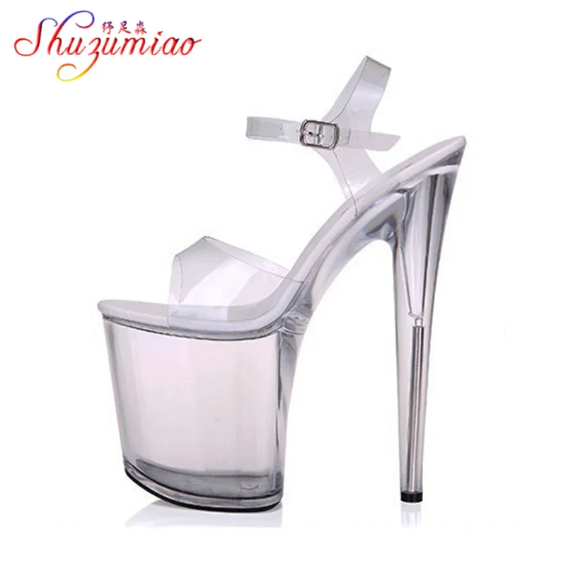 Женские босоножки со стальными вставками, на очень высоком каблуке 7-20 см, прозрачные, со стразами