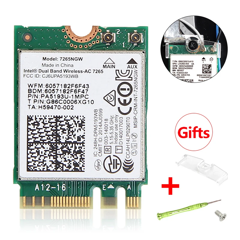 1 x 7265AC NGFF беспроводная карта (без CD драйвера в комплекте)