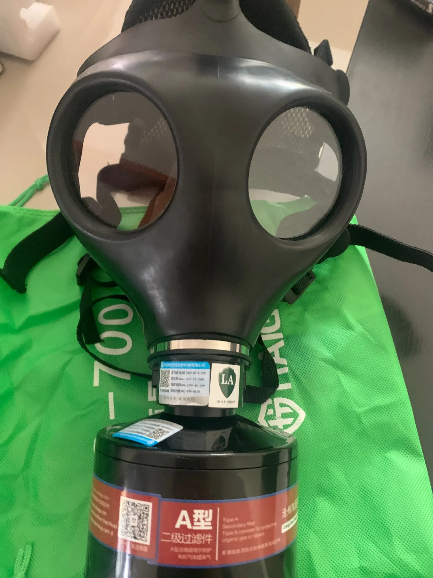 Неплохая копия израильского противогаза, но если у вас форма лица не азиатская то нужно будет менять лямки. Оригинальных недостаточно чтобы полностью затянуть и поэтому появляются просветы на висках которые пропускают грязный воздух. Чтобы не было таких проблем то рекомендую сменить оригинальные лямки на лямки от ГП7 или ППМ88