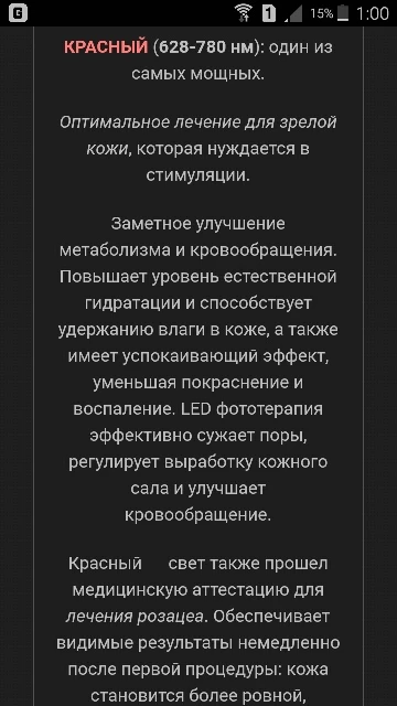 Быстрая доставка курьером. Товар соответствует описанию. Можно использовать определенный цвет или включить сразу все. Для стимуляции мышц можно использовать микротоки. В моем случае, не получилось извлечь нужный эффект от их применения. Даже на единице, ощущался сильный дискомфорт. После чего, на месте соприкосновения токов остались расширенный поры. Восстановилось только через два дня. Посоветовали, перед применением токов нанести на лицо гель для УЗИ, должен исчезнуть дискомфорт. Не могу сказать, не пробовала.