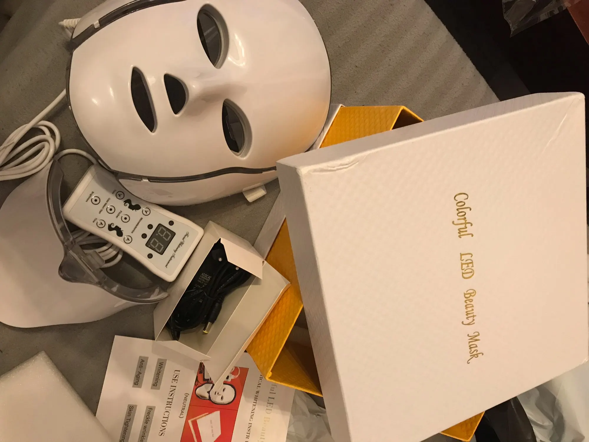 Мой заказ прибыл... хотя это заняло некоторое время, чтобы получить. + выглядит замечательно, этот продукт все еще будет использовать, чтобы увидеть, действительно ли это эффективно для меня, как все говорят. Более того, это красивая светодиодная маска.