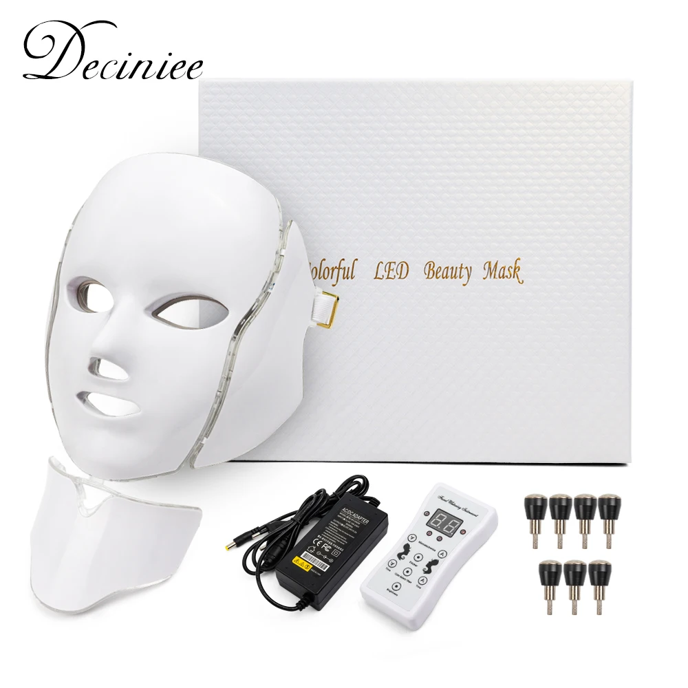 Маска для лица со светодиодной подсветкой, 7 цветов, для омоложения шеи, подтяжки кожи, Прыщи против морщин, для косметических процедур, корейский фотон, для спа, дома