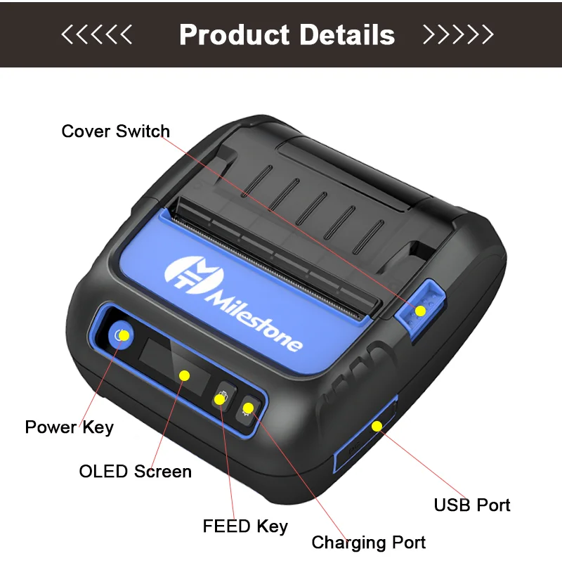 Milestone2021 MHT-P80F беспроводной термочекэтикетка 2 в принтере 80 мм Bluetooth AndroidiOSWindows бизнес Impresora termica