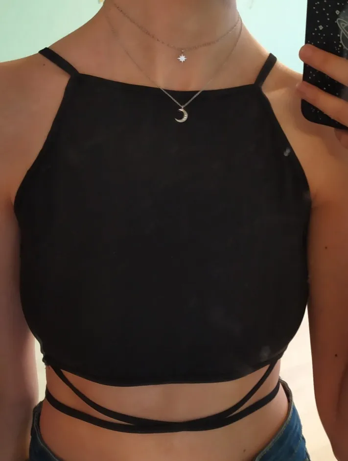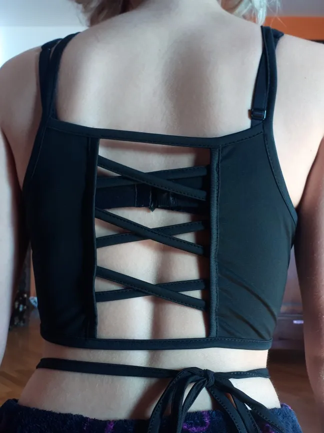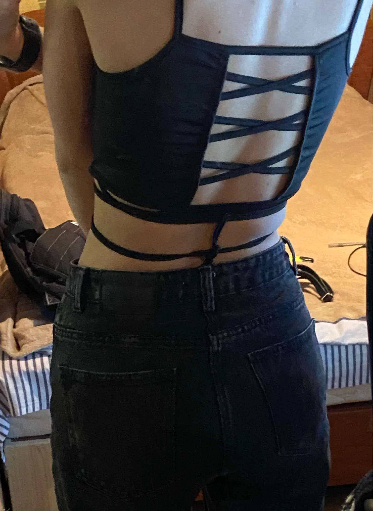 Отличный топ. Жаль что верёвочки сзади не перевязываются