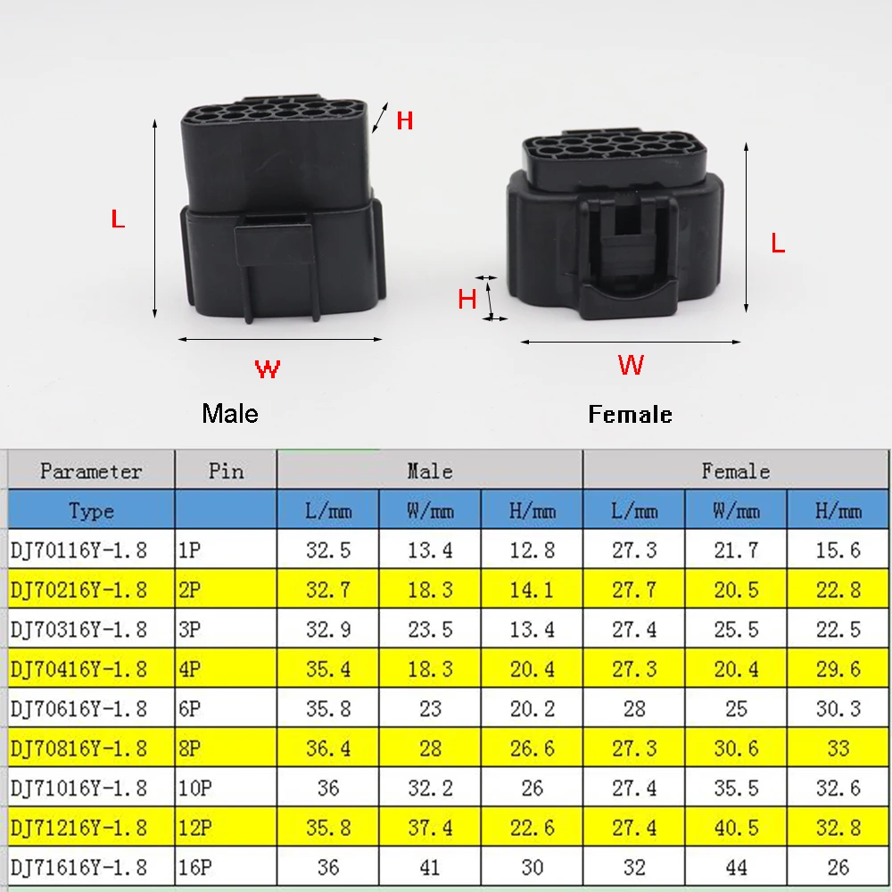 1P 2P3P4P6P8P10P12P16 Pin 1.8 Waterproof Wire Connector Electrical Plug Car Auto Sealed Truck Harness