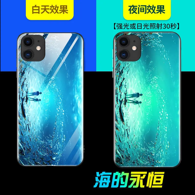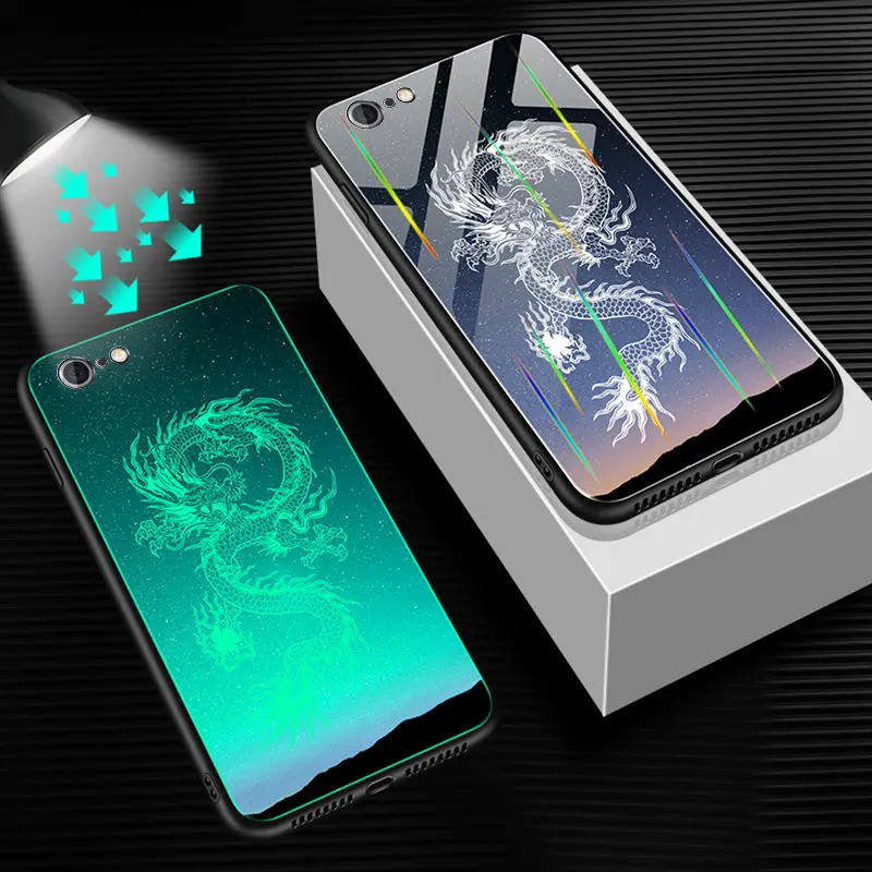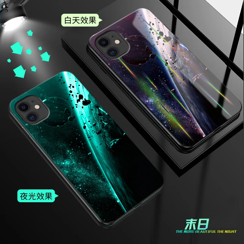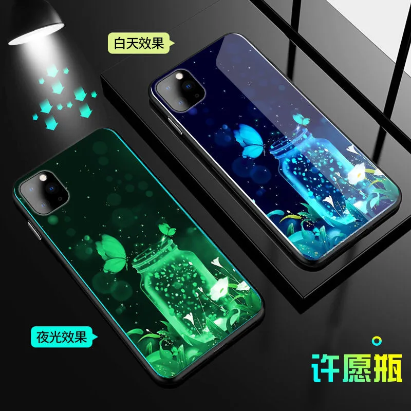 Светящийся стеклянный чехол для iPhone 13, 12 Mini, 11 Pro Max, 5, 5S, 6, 6S, 7, 8 Plus, SE 2020, X, XR, XS, флуоресцентный чехол