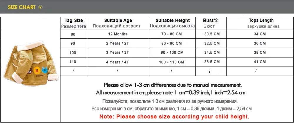Примечание: Пожалуйста, выберите размер в соответствии с ростом вашего ребенка.