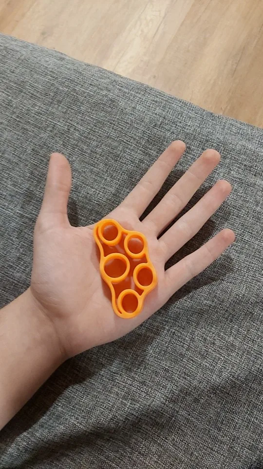до Москвы за две недели, это мне показалось прям очень быстро) брала для тренировки рук сыну, кисти очень слабые, нагрузка для детских рук самое то. Большой палец только иногда выскальзывает, дырка для него большевата.