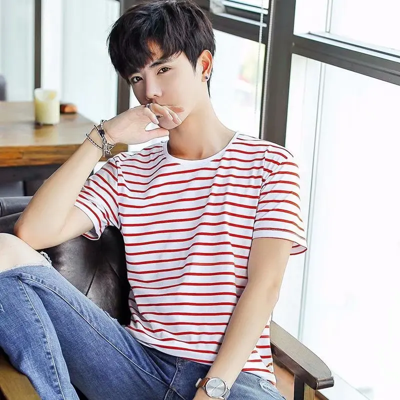 Полосатая модная футболка, Повседневная модная футболка с круглым вырезом и коротким рукавом, Мужская облегающая футболка в стиле Харадзюку, мужская одежда WGTX161 R
