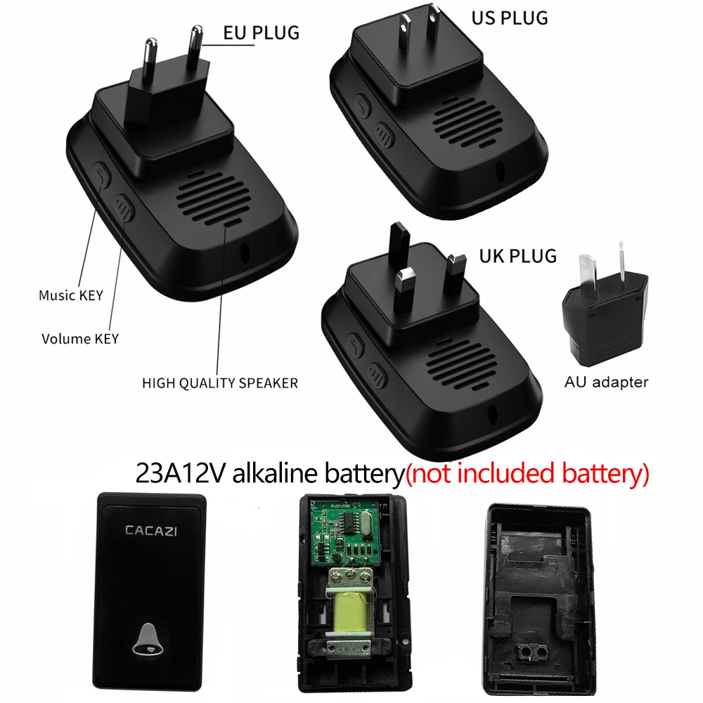 11. Просто подключите приемник к электрической розетке, кнопочный передатчик может быть приклеен к двери с помощью клейких лент.