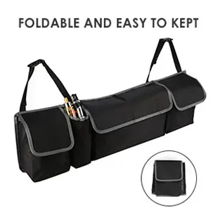 【Прочный и не просвечиваетсяЭтот органайзер для хранения SUV изготовлен из прочной ткани Оксфорд 600D с усиленной прошивкой, толстая поролоновая подкладка и нескользящая полоса делают Органайзер на заднюю часть багажника твердым и не легко провисать, когда его наполнит