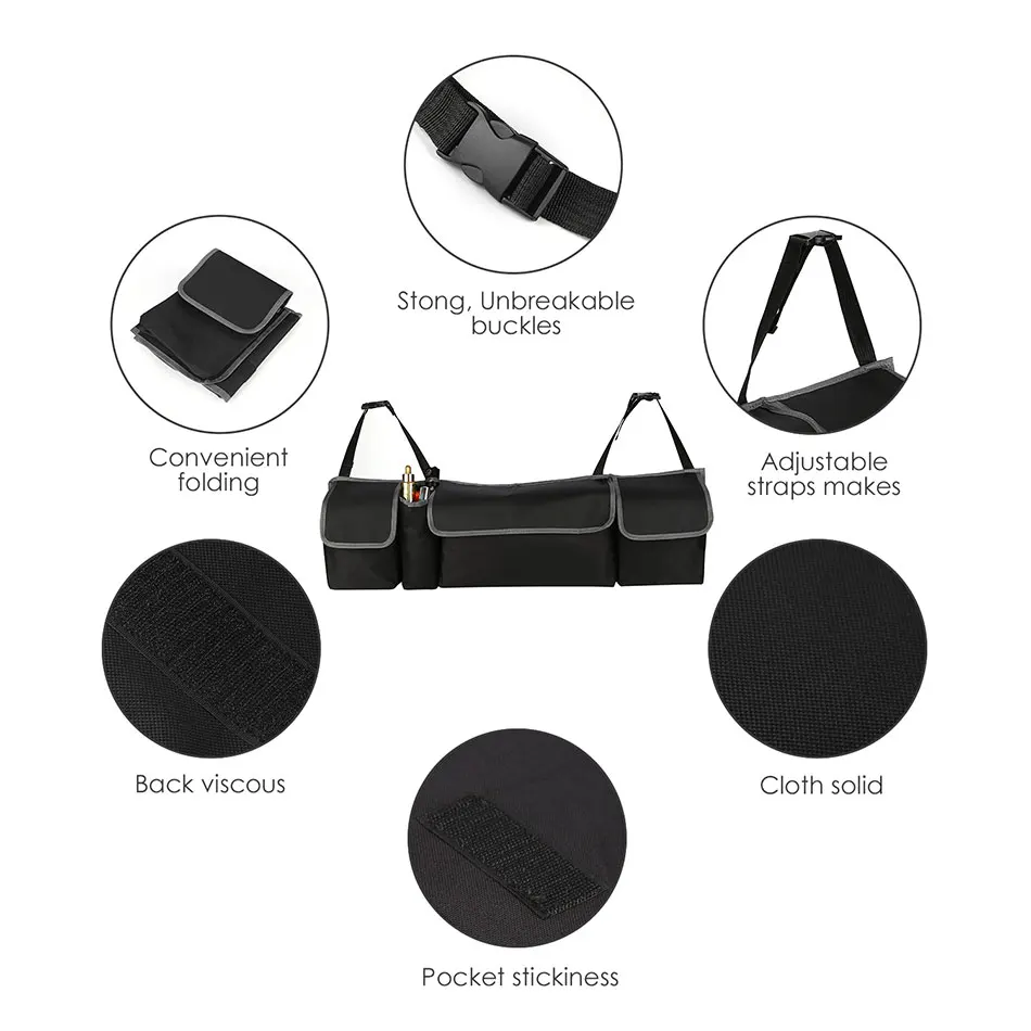 Органайзер для багажника на заднем сидении предназначен для хранения всех ваших ежедневных предметов первой необходимости и продуктов в вашем транспортном средстве и сохранения вашего багажника. Это помогает сэкономить много места для тех, у кого много гаджетов в багажнике, и экономит много времени для тех, у кого нет времени, чтобы очистить багажник, также помогает освободить руки мам, у которых есть дети и которым нравится хранить игрушки в багажнике. Если вы ищете что-то для решения проблемы с багажником, органайзер для багажника-лучший выбор для вас.