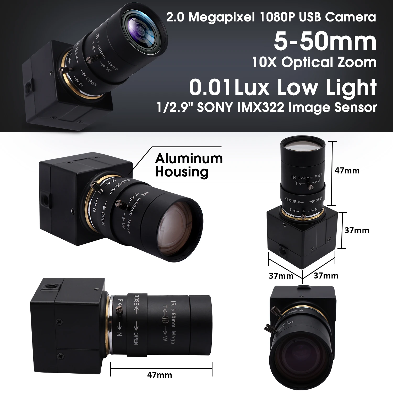 Камера видеонаблюдения Sony IMX322 с USB, H.264, 30fps, 1920*1080, объектив с переменным фокусом и низким освещением, промышленная камера с поддержкой USB