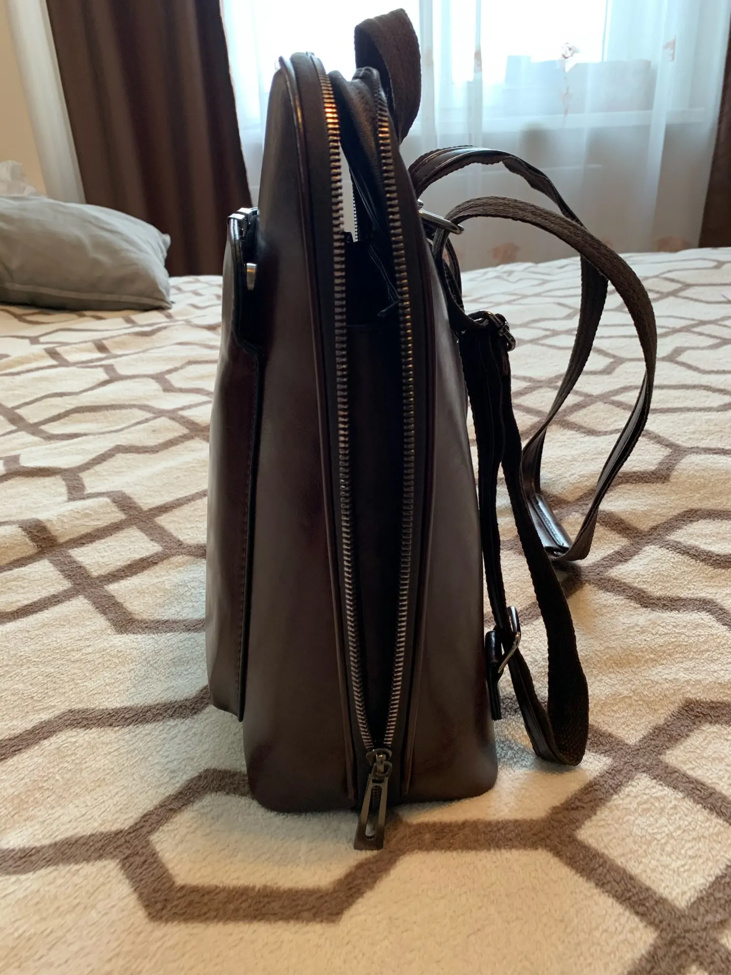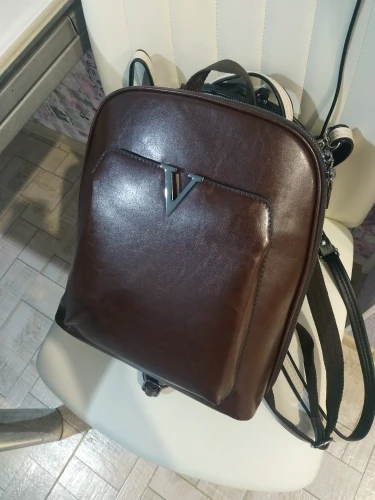 Отличный рюкзак, размер соответсвует заявленному в описании. Цвет на моем фото светлее чем на самом деле, в реале он темнее и богаче выглядит, но чуть-чуть светлее чем на фото продавца. Качество отличное как у изделия так и у фурнитуры, в общем берите не пожалеете. Очень элегантный рюкзак, который можно использовать как сумку