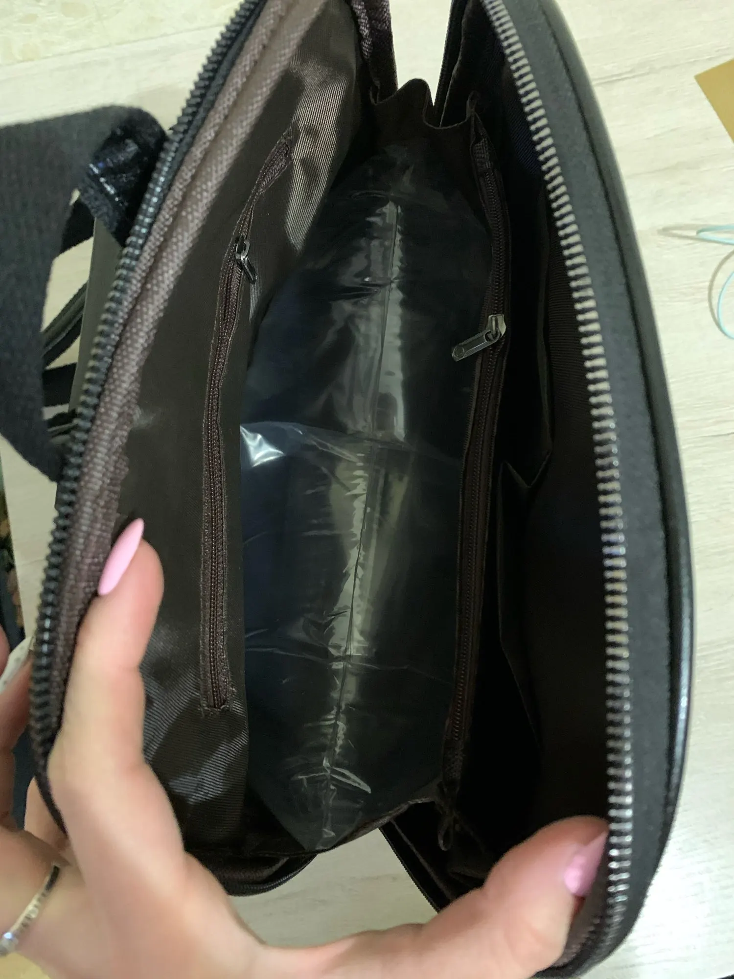 Вместительный, красивый, хорошо был упакован, но на переднем кармане, все равно была небольшая вмятина, которая через пару дней выровнялась. Мой рост 1,75, рюкзак-сумка смотрится отлично. на задней стороне рюкзака есть еще один карман на молнии. Доставка быстрее, чем было написано. Я очень довольна, рекомендую.