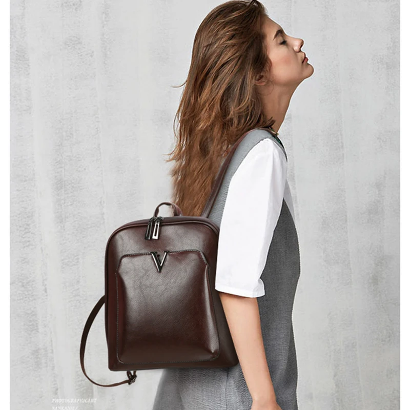 Рюкзак женский кожаный, большой емкости, винтажный, 2021