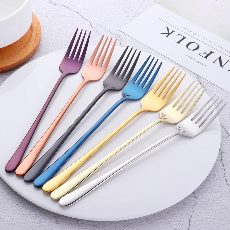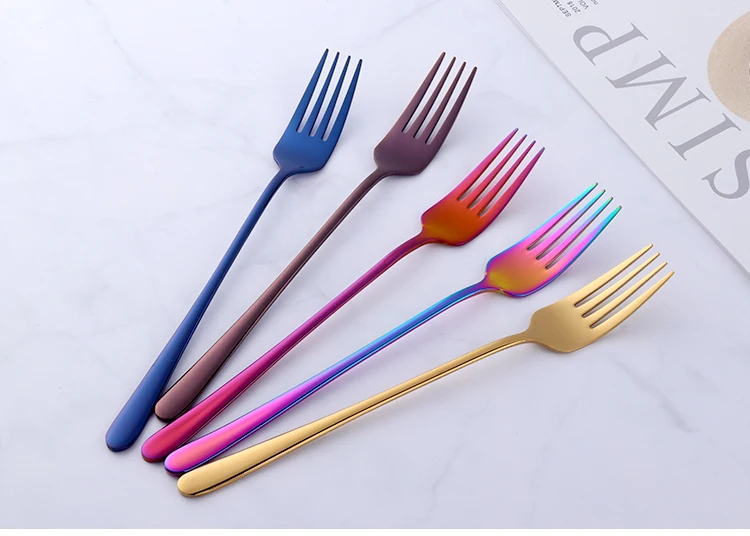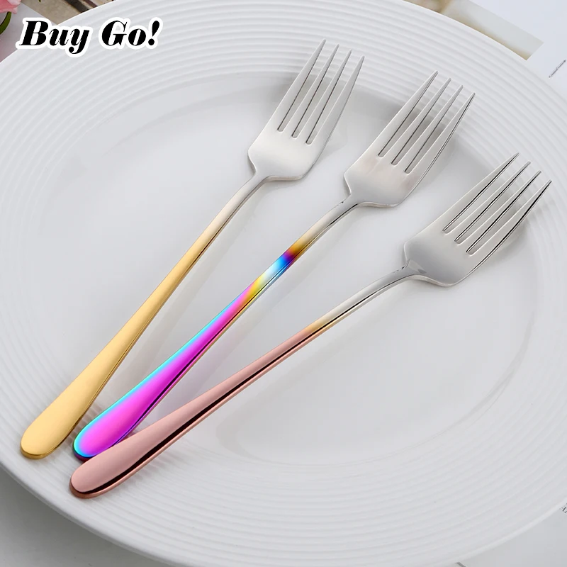 Вилка для салата из нержавеющей стали, 1 шт., корейский Радужный торт фрукт вилка, столовая посуда, Золотая Десертная Вилка для отеля, вечеринки, кухонный инструмент