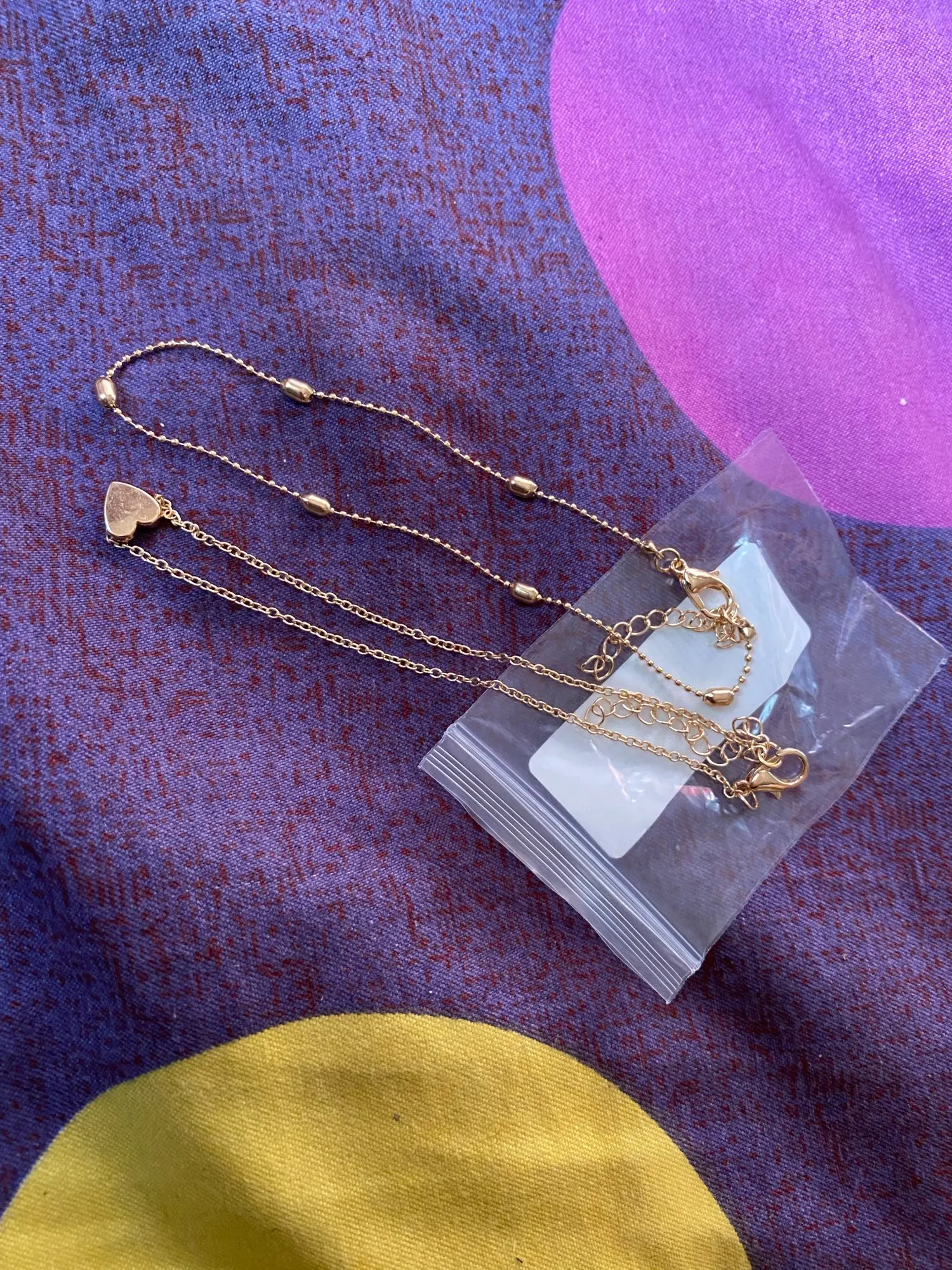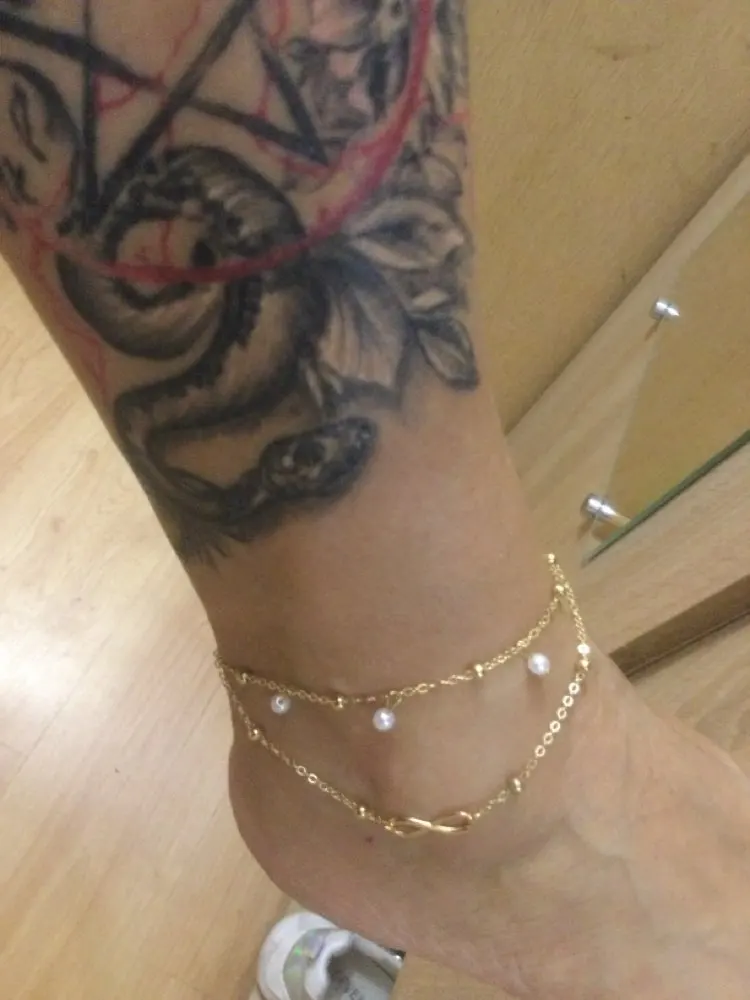 Выглядит как многослойная цепочка, по крайней мере, я думал, что это так, но это происходит как индивидуальные лодыжки, так что вы можете носить их вместе или каждый на себе. Выглядит хорошо так же, как описано, только бойтесь, что это может потускнеть сверхурочно (время подскажем)