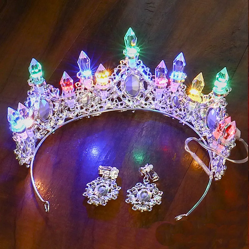 Аксессуары для волос для невесты, светящаяся Корона из сплава с кристаллами для вечеринки, свадьбы, стразы светильник ящаяся Корона, пасхальный День Св. Валентина