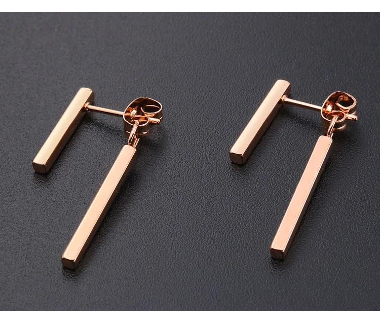 Женские прямоугольные серьги-гвоздики, из нержавеющей стали, под розовое золото