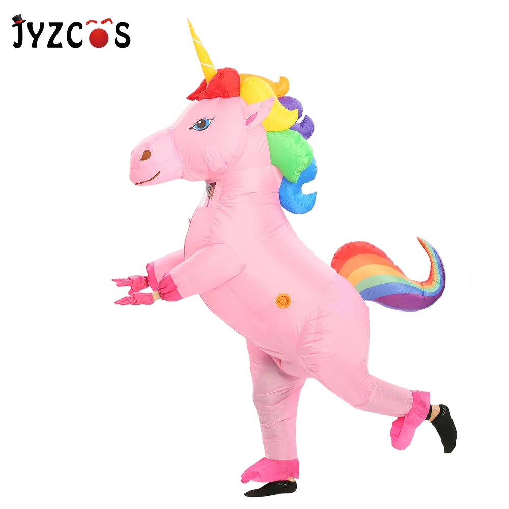 Надувной костюм единорога JYZCOS, для взрослых и детей, Радужный костюм на Хэллоуин для женщин, мужчин, карнавальный талисман, Пурим, Рождественский косплей