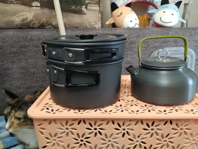 Ну сковородочка и кастрюлька - норм. А вот чайник - это для Барби. Там на две чашки(поллитра) максимум. столовые приборы хороши, удобно. В целом неплохо, компактно, для рюкзака самое то