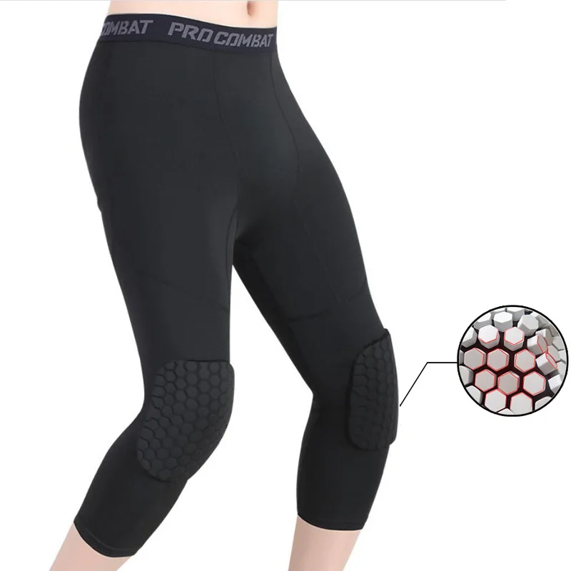 Защитные баскетбольные шорты с защитой от столкновений, мужские тренировочные леггинсы для фитнеса 34 с наколенниками, Спортивные Компрессионные брюки 3XL