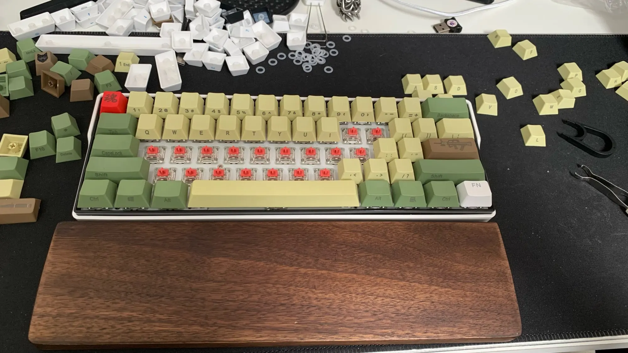 Красные переключатели cherry MX звучат идеально после поломки. Небольшое предложение, если вы планируете использовать переключатели или любые варианты линии cherry MX. Зажмите стебель и нанесите небольшое тонкое количество блеска на стволовое отверстие. Кроме того, Покройте нижнюю часть пружины, чтобы уменьшить пружина, или замените их, если это в вашем распоряжении.