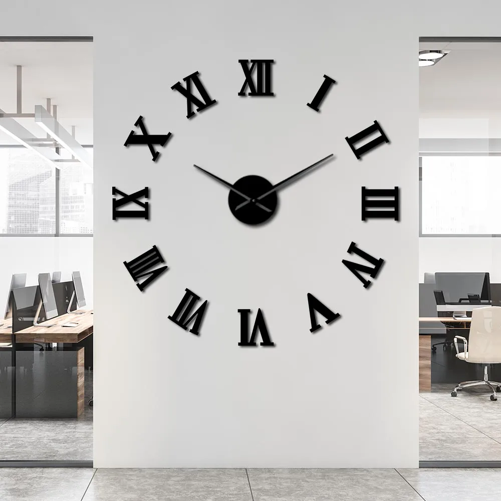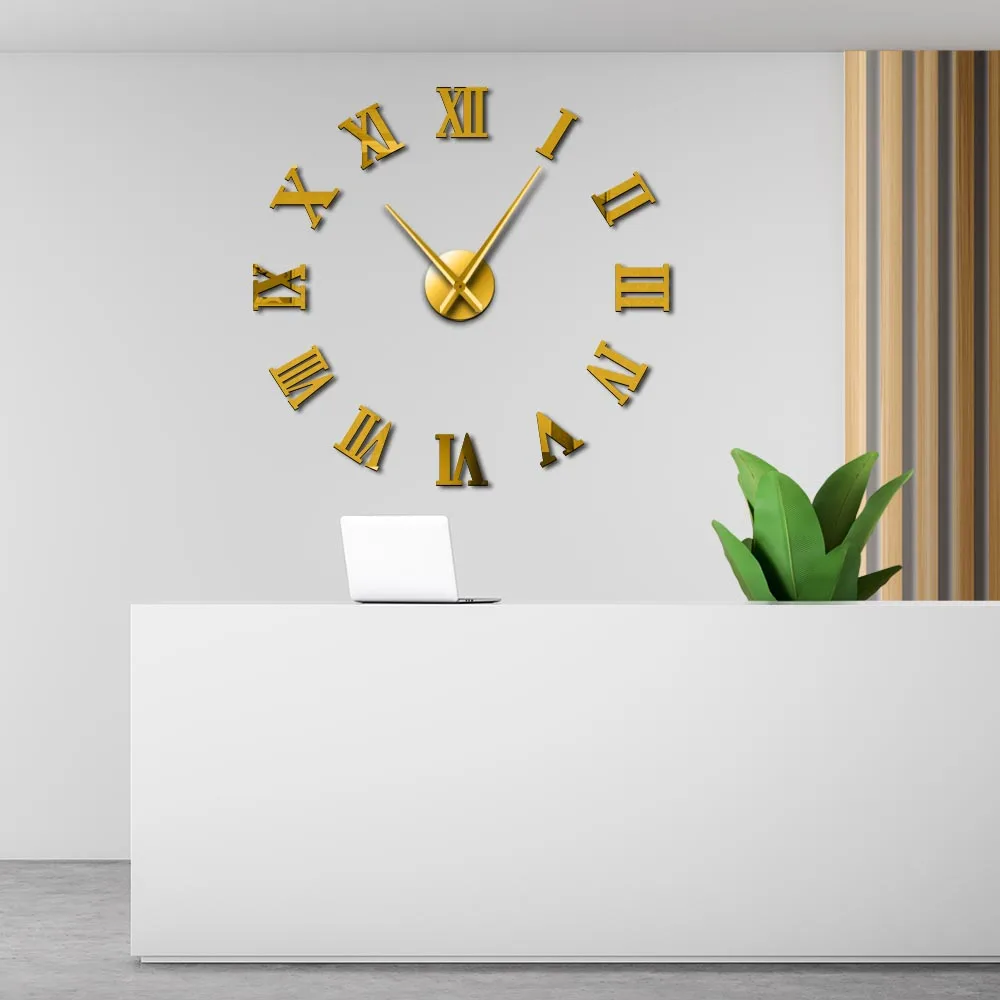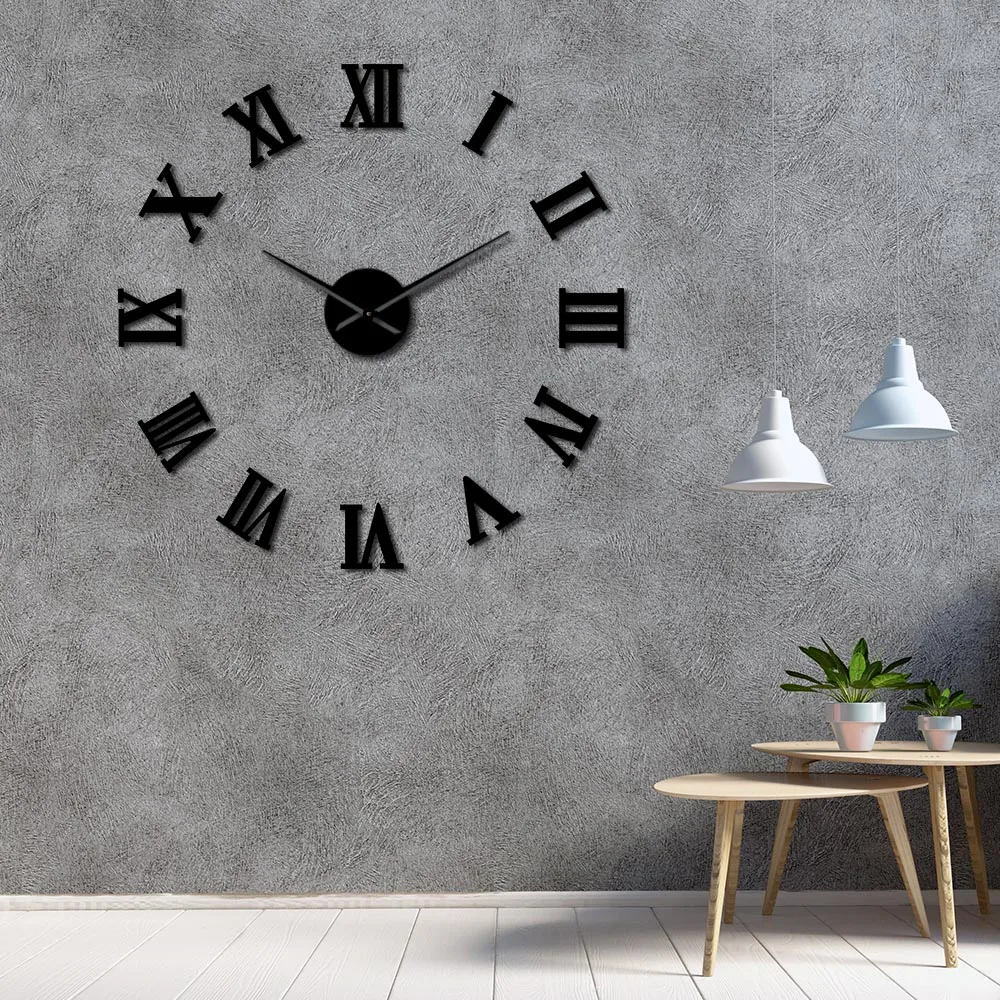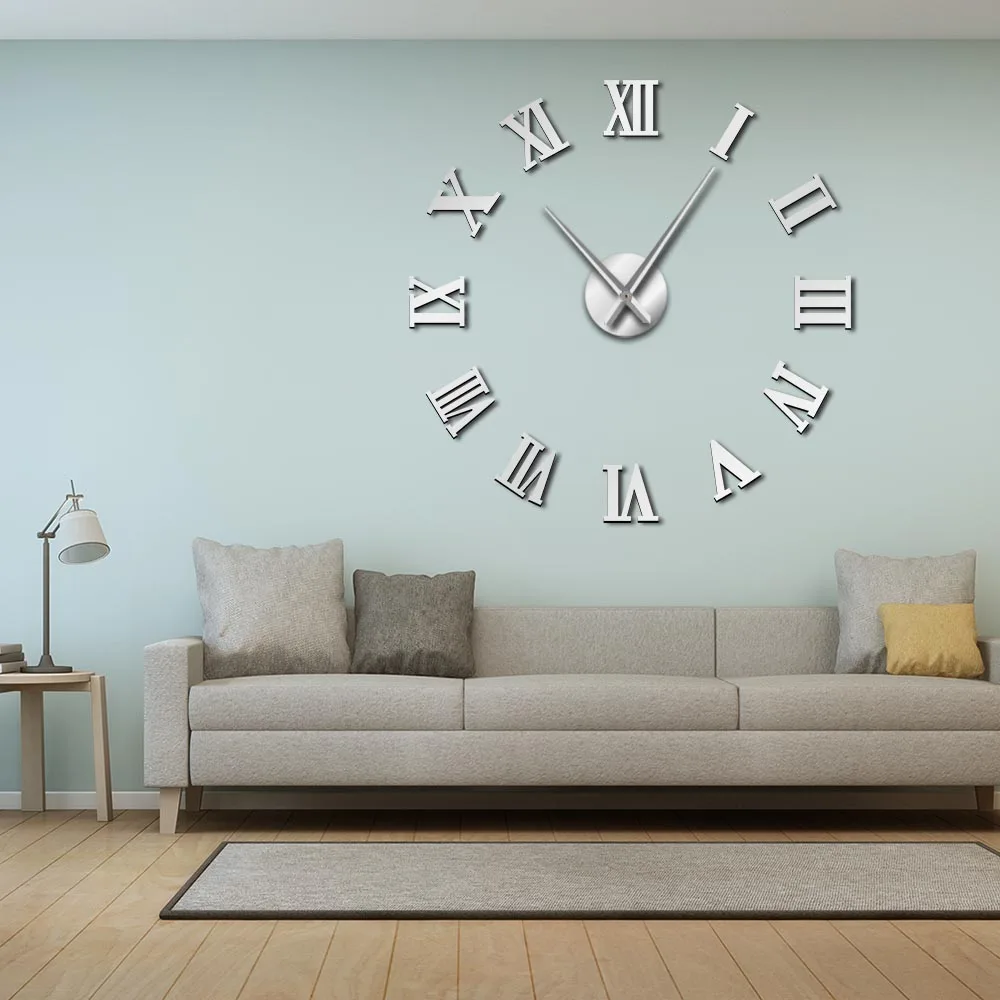 Настенные часы с римскими цифрами, для самостоятельной сборки, современные часы, 3D акриловая зеркальная поверхность, набор украшений, бесшумная наклейка, креативное шоу